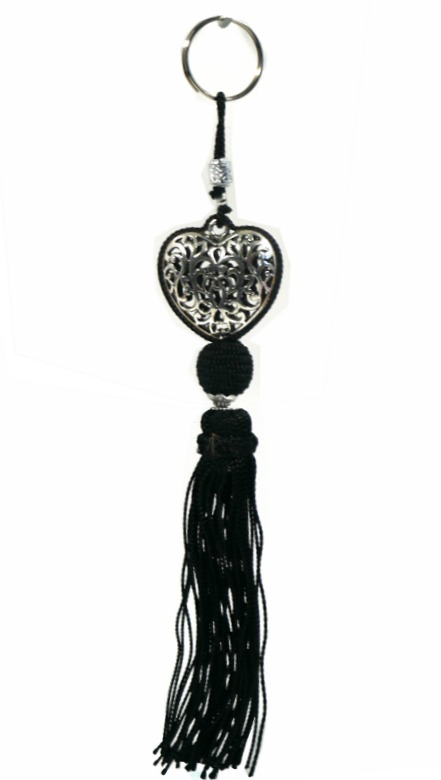 Porte-clés en métal argenté joliment ciselé, constitués de breloques, grand coeur, et de pompon en sabra, avec 8 coloris disponibles... De jolis agréments argentés font de ces porte-clés des pièces originales.