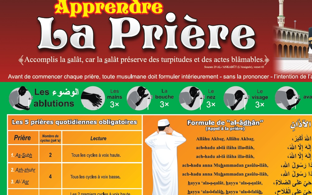 La partie haute du poster permet d'apprendre également comment faire les ablutions (woudou).