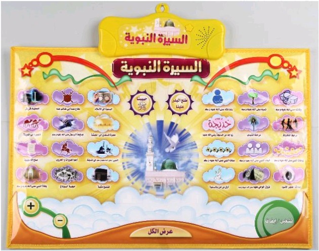 Poster parlant contenant la narration de la vie du prophète (SAW) de façon complète, étape par étape, quand on appuie sur un titre nous écoutons la partie de la vie du prophète SAW concernée avec une belle voix en langue arabe littéraire. Possibilité réglage du volume et d'écouter l'ensemble en une seule fois.