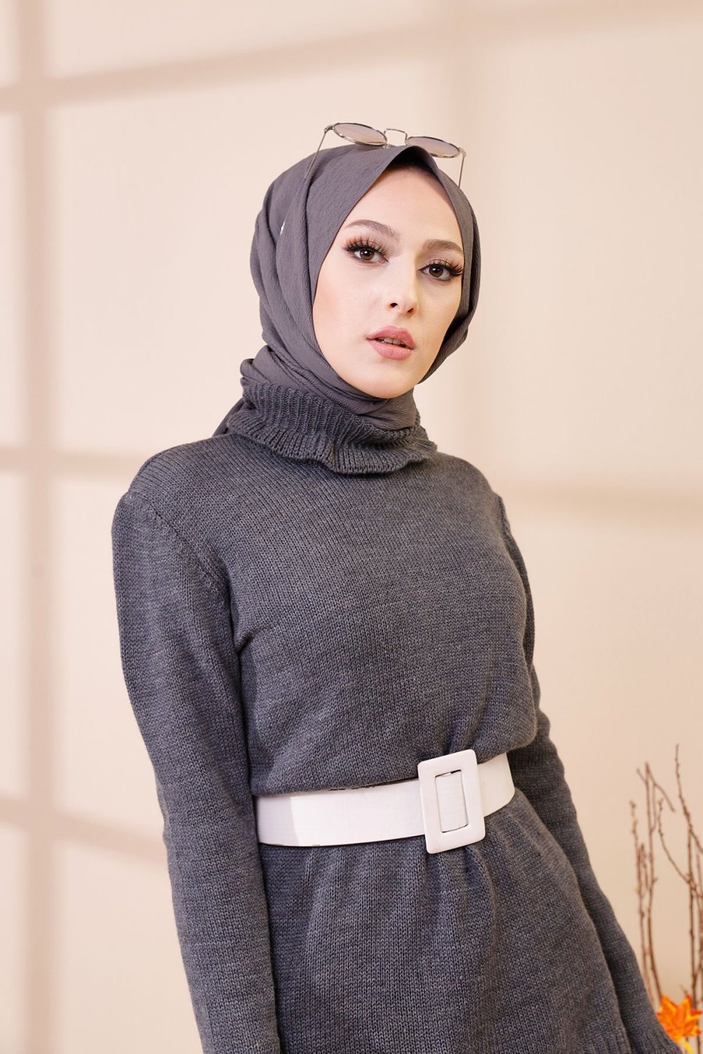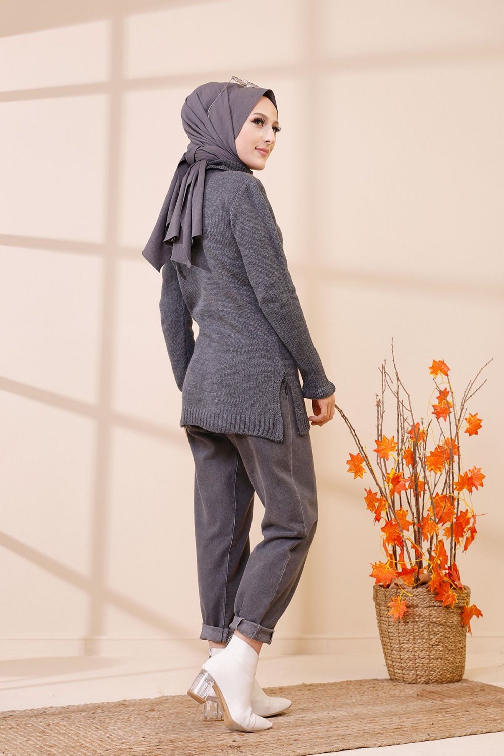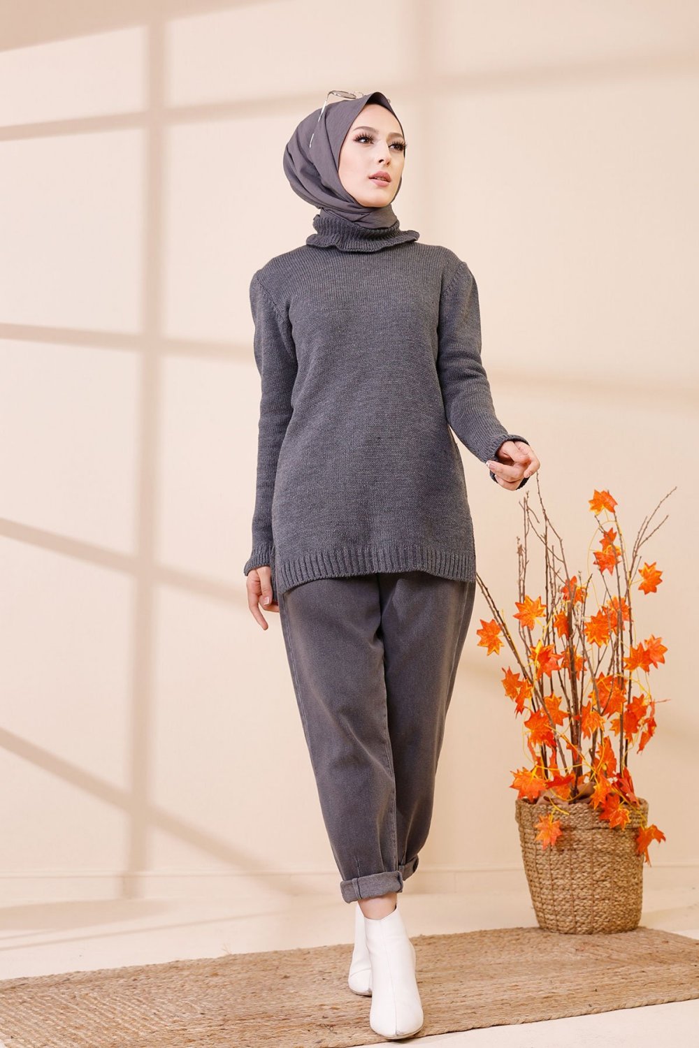 Pull Sweater en maille pour femme (Vêtement Hijab Automne-Hiver) - Couleur anthracite Vetement & Accessoire