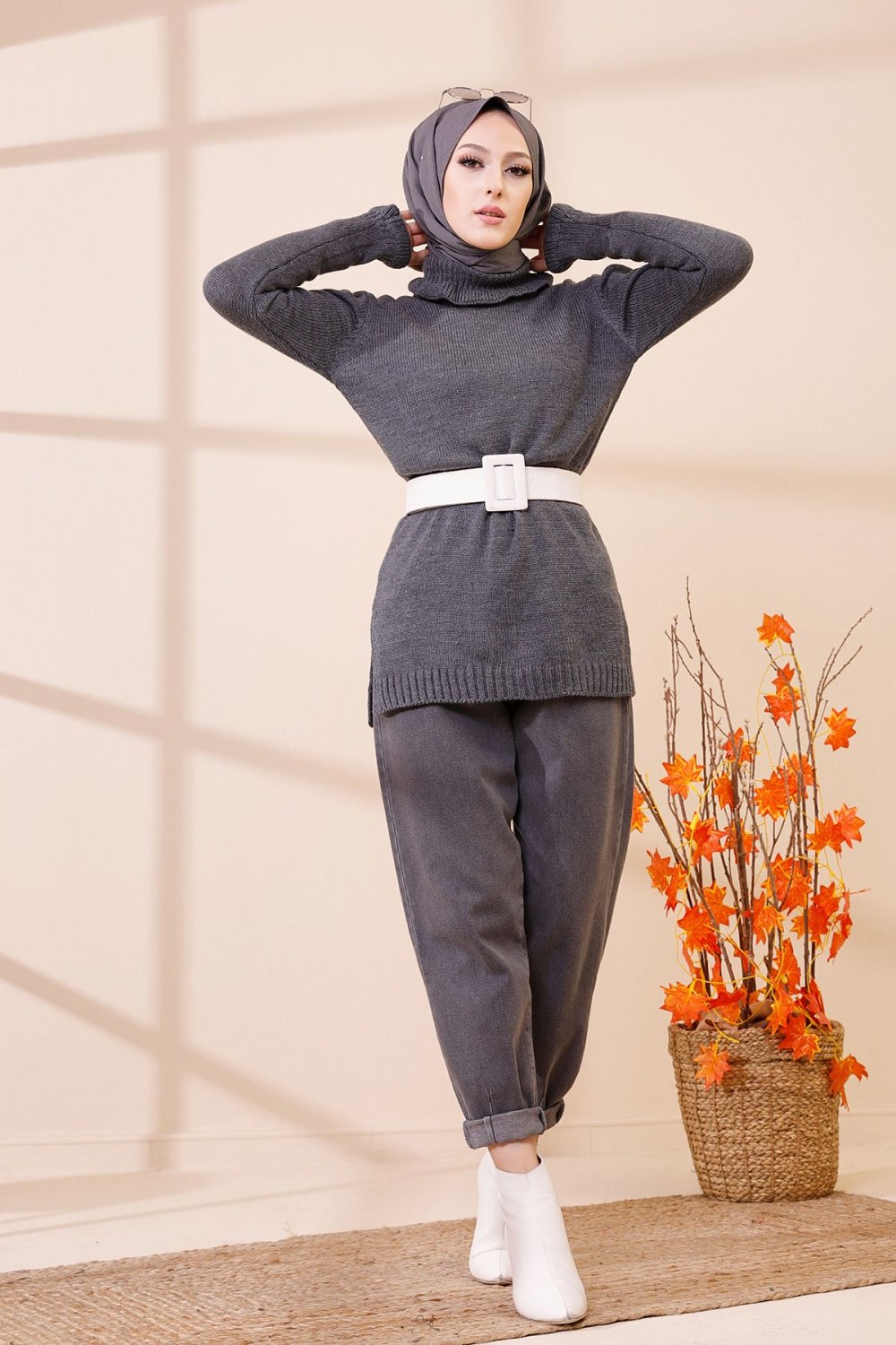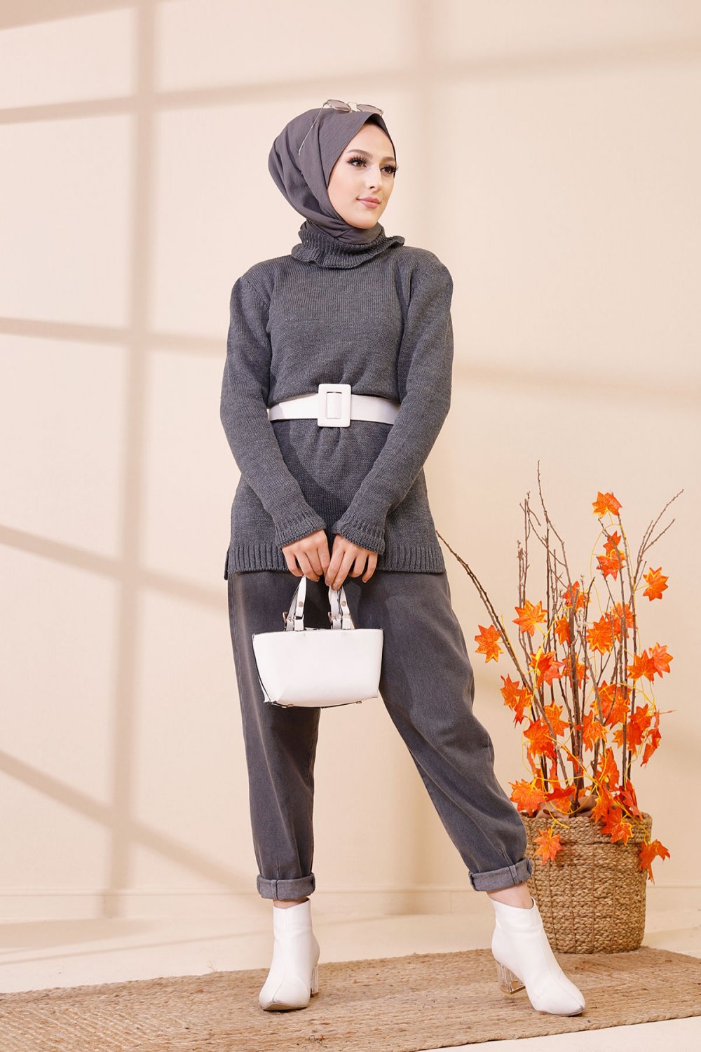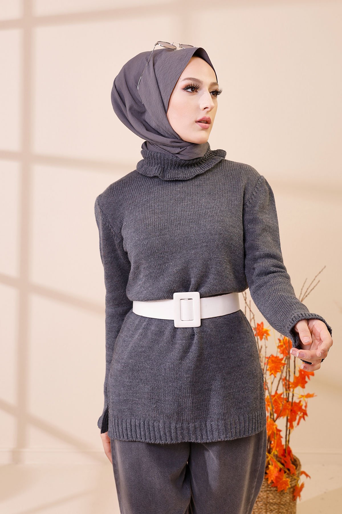 Pull Sweater en maille pour femme (Vêtement Hijab Automne-Hiver) - Couleur anthracite Vetement & Accessoire