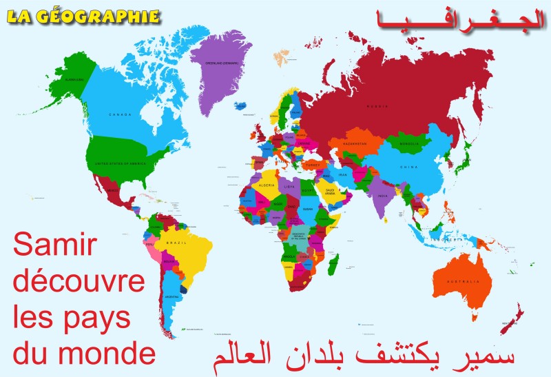 Puzzle personnalisé 120 pièces : La carte géographique du monde trilingue français/arabe/anglais (avec le prénom de l'enfant) - REF. 14042 (9.90 €)