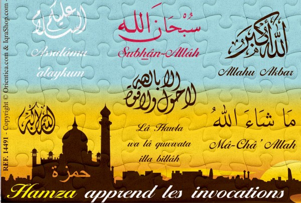 Puzzle personnalisable avec le prénom de l'enfant : J'apprends à dire Bismillah et la signification d'Al-Hamdulillâh (Remercier Allah) - REF. 28484 (7.50 €) |