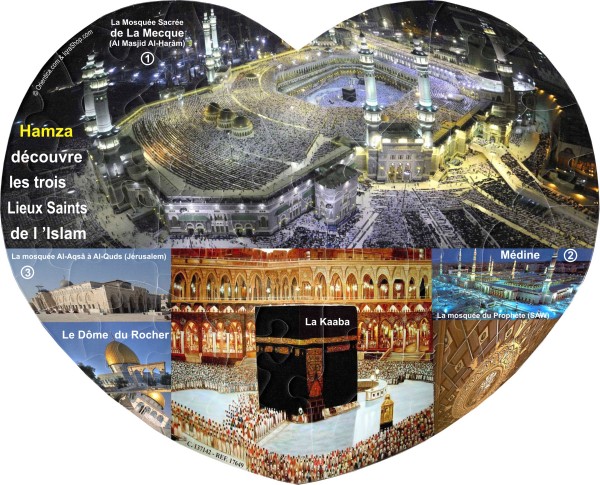 Puzzle personnalisé sous forme de coeur : Les trois Mosquées Sacrées de l'Islam (bilingue) - REF. 17035 (9.90 €) |