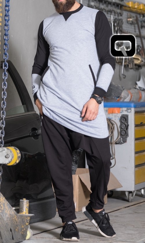Qamis Court Sweat - Couleur Gris Clair Et Anthracite Vetement & Accessoire