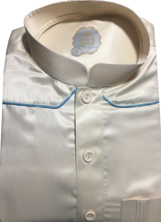 Qamis élégant de qualité supérieure tissu satiné pour homme - Couleur blanc cassé et bleu - REF. 35390 (49.00 €)