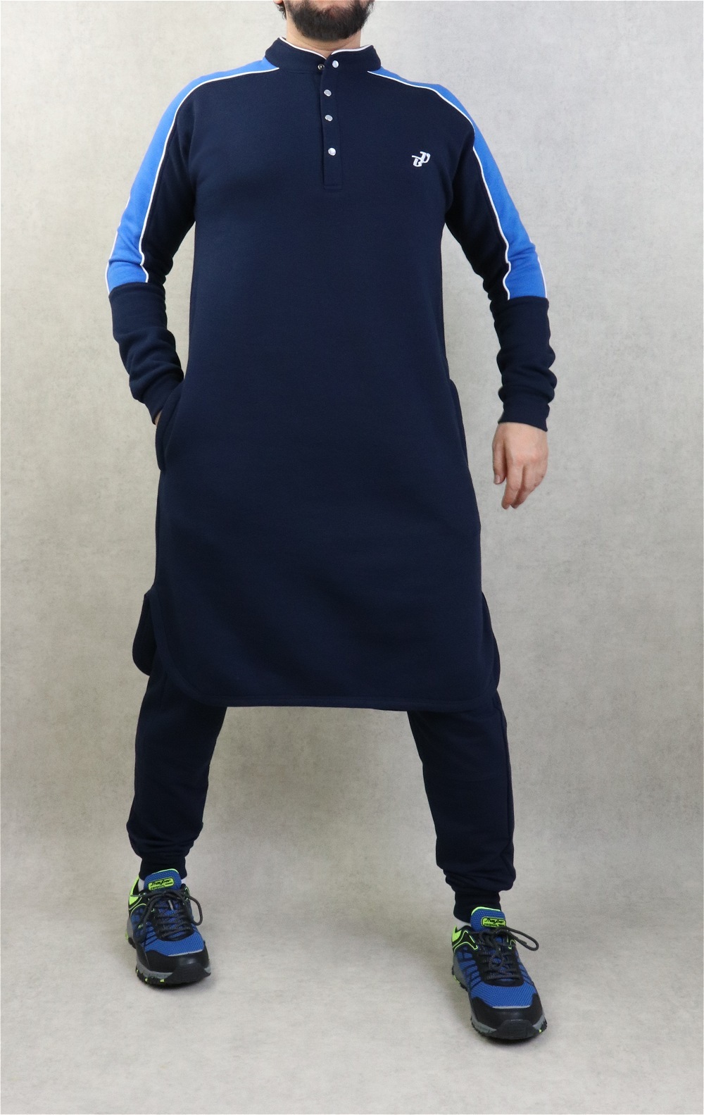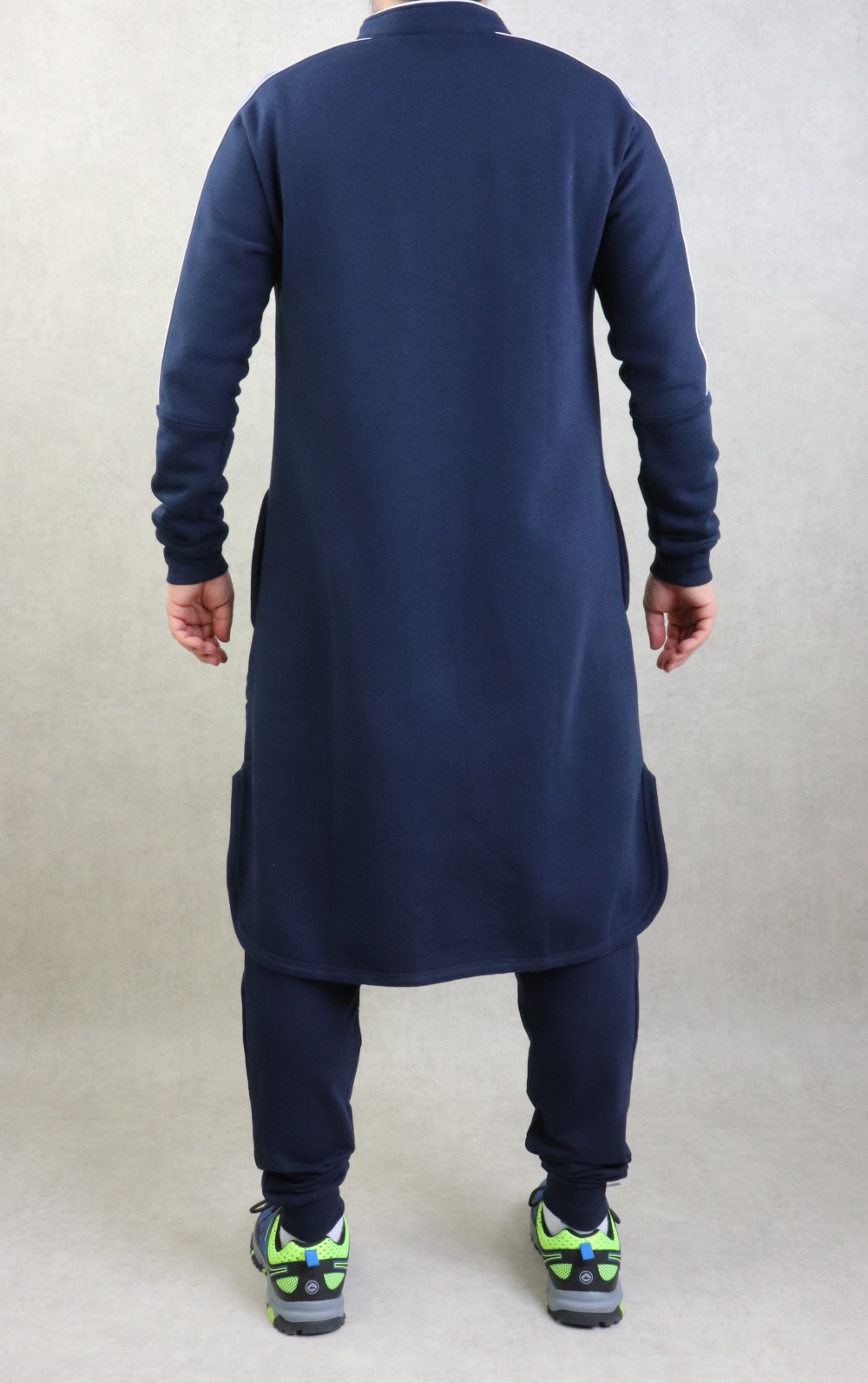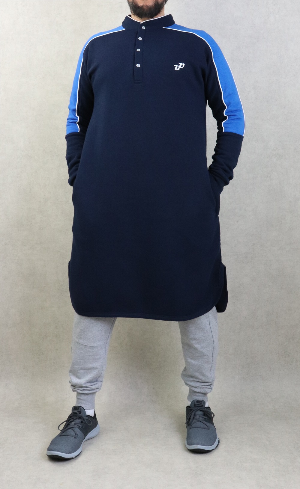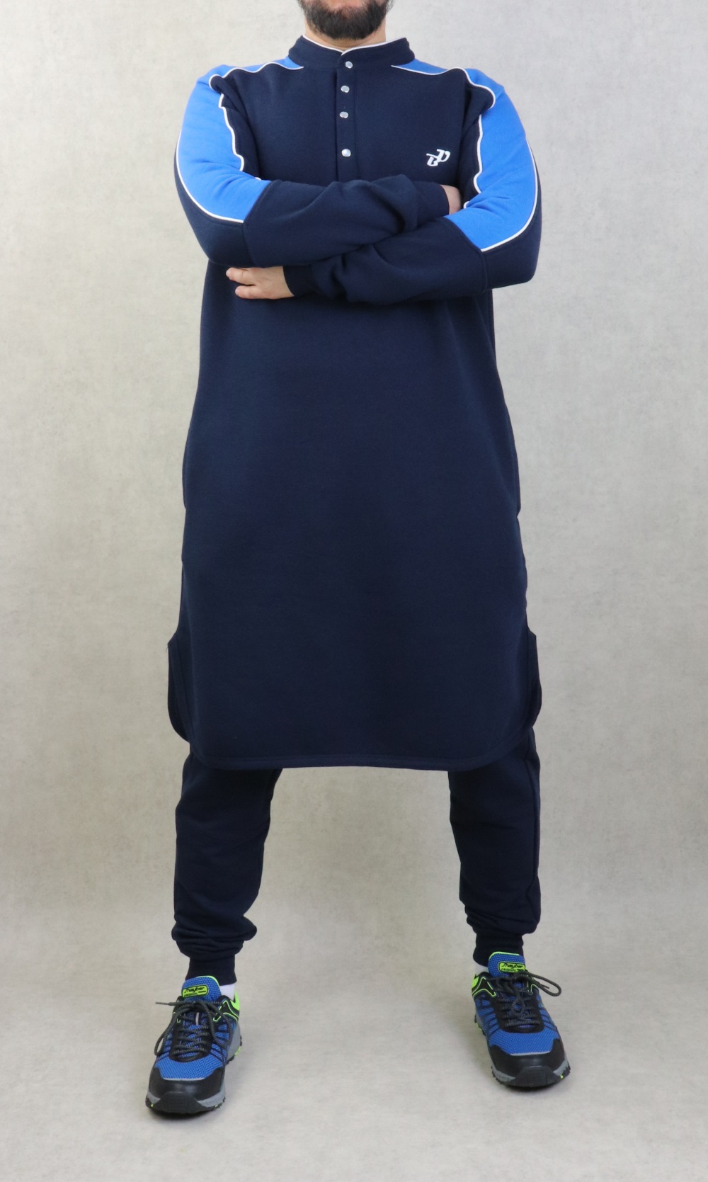 Confectionné dans une matière de qualité, ce qamis avec boutons pression au niveau de la poitrine. Légèrement plus long derrière que devant. Parties bleu au niveau des épaules et des bras. Deux poches zip sur les côtés.