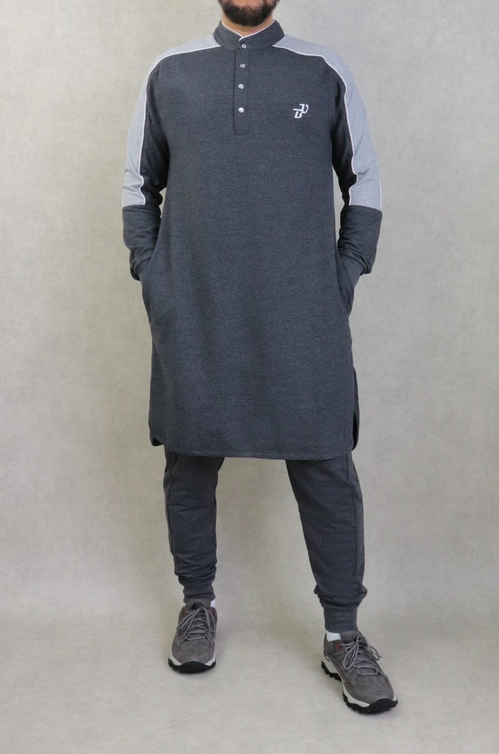 Qamis court Premium molletonné bicolore de Marque Best Ummah - Couleur Gris chiné - REF. 36656 (39.90 €)