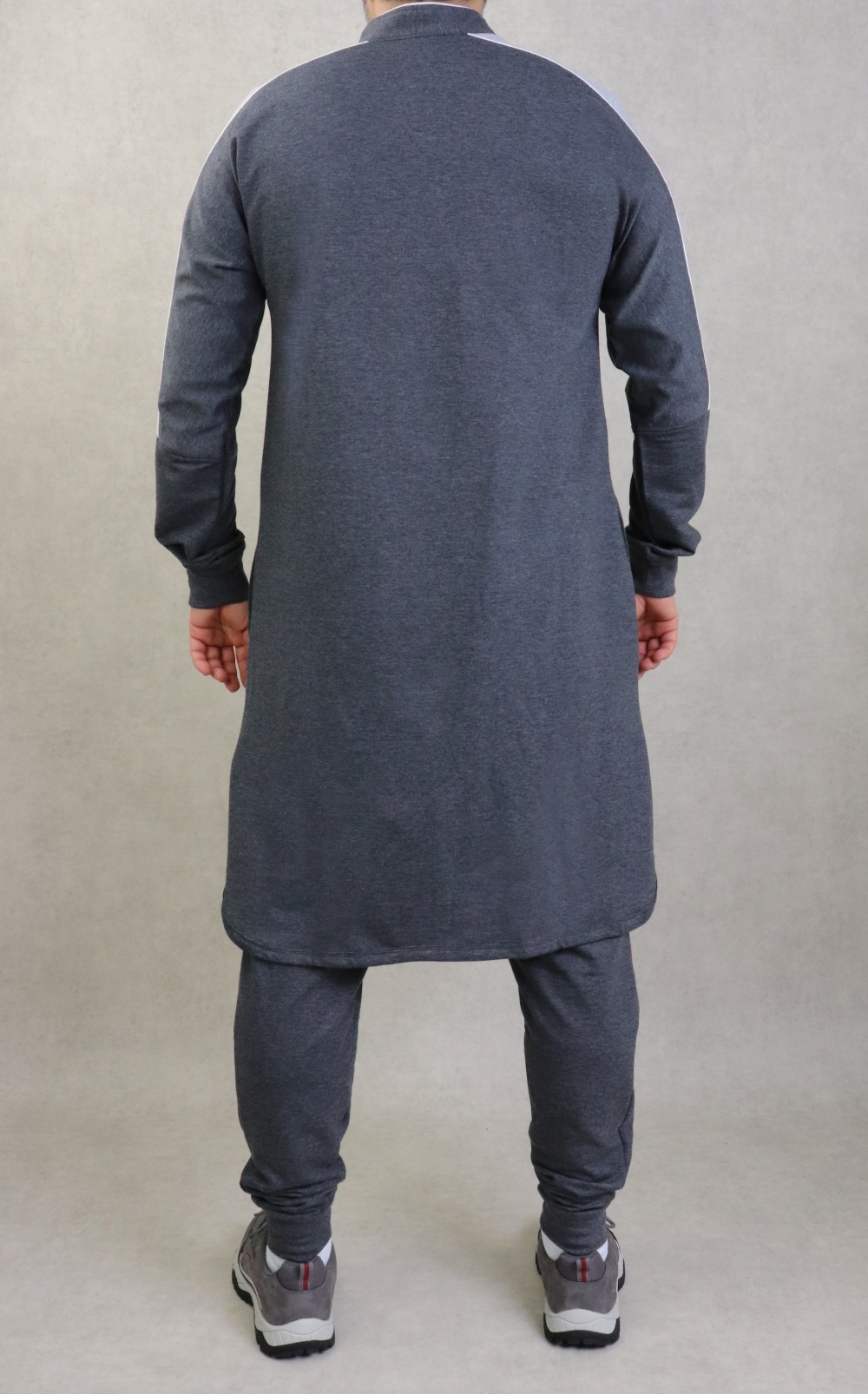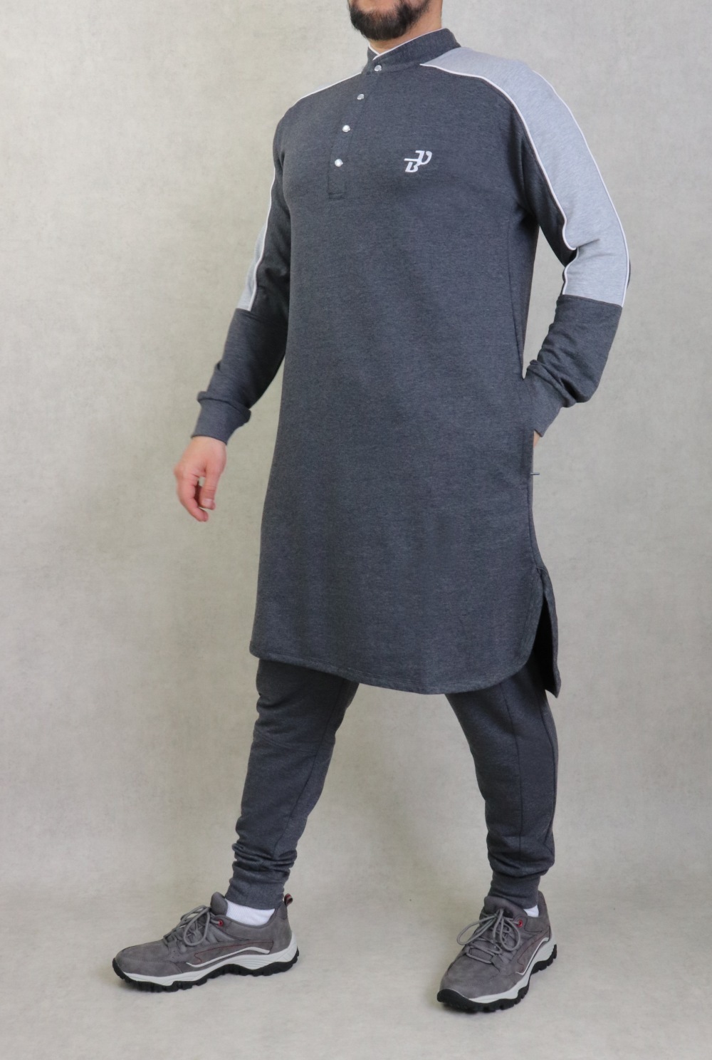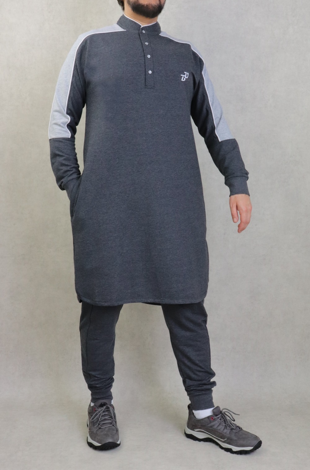 Ensemble Sweat longline et son Pantalon Seroual Jogging léger homme - Marque Best Ummah - Couleur Gris foncé chiné - REF. 38719 (49.90 €)