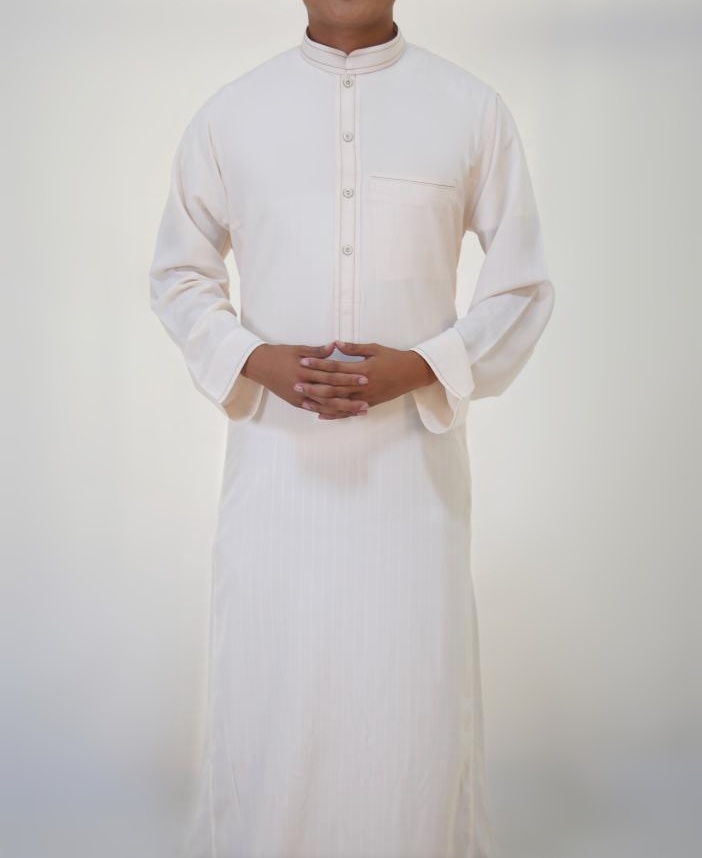 Qamis homme de qualité supérieure couleur Beige avec bandes au niveau des épaules - REF. 31920 (45.00 €)