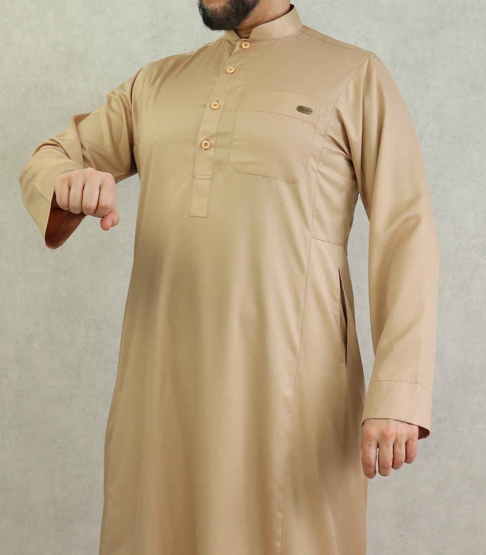 Qamis homme de qualité supérieure couleur beige avec poche stylée - REF. 31899 (45.00 €)
