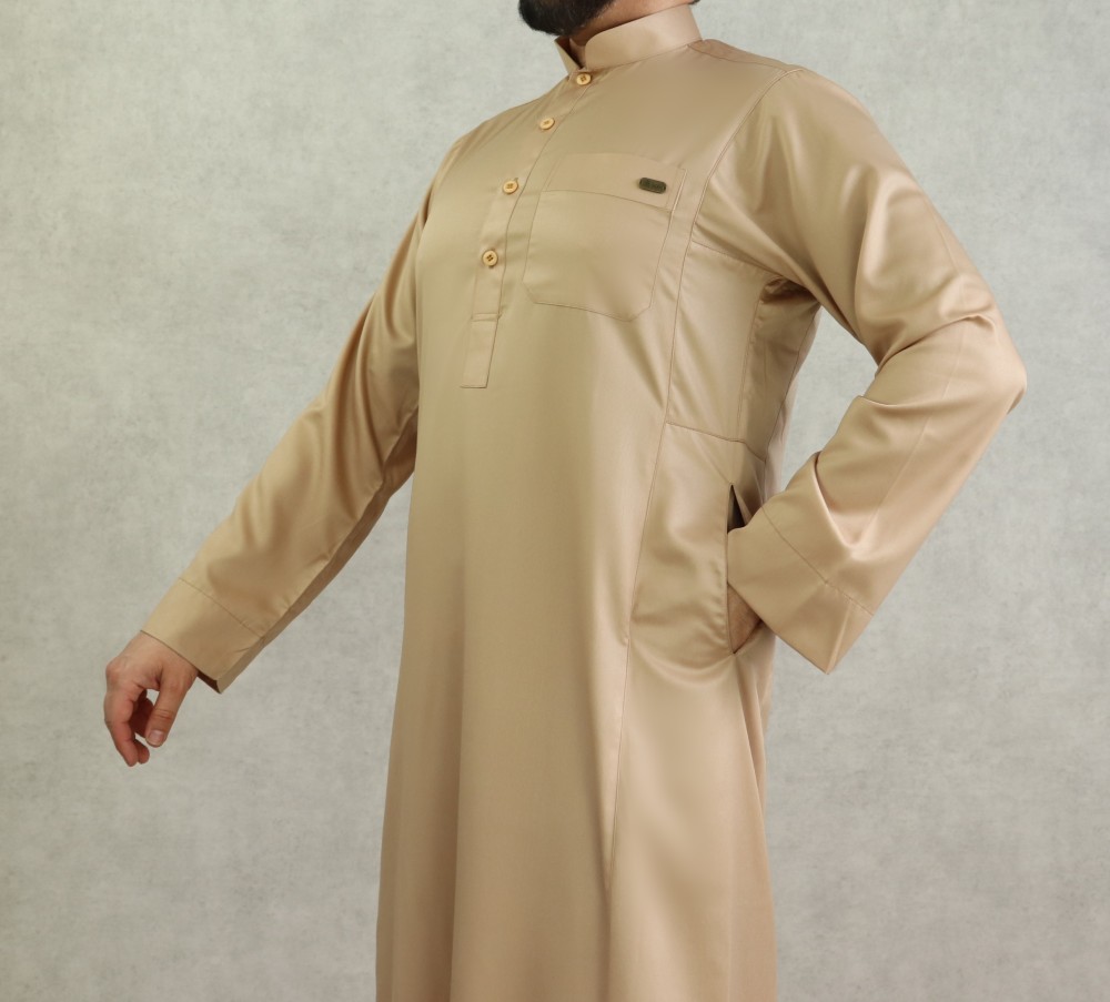Qamis homme classique de qualite superieure avec tissu legerement satine couleur beige