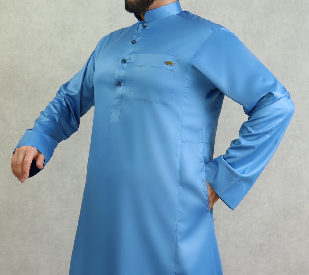 Qamis homme de qualité supérieure avec tissu satiné couleur bleu Vetement & Accessoire