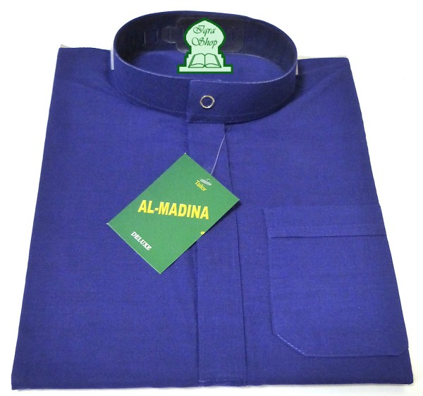 Qamis long pour enfants, manches longues avec col et fermeture par boutons à l'avant (voir photo), une poche sur la poitrine et deux poches latérales. Disponible en plusieurs couleurs. Composition : Composition : 65% coton - 35% polyester.