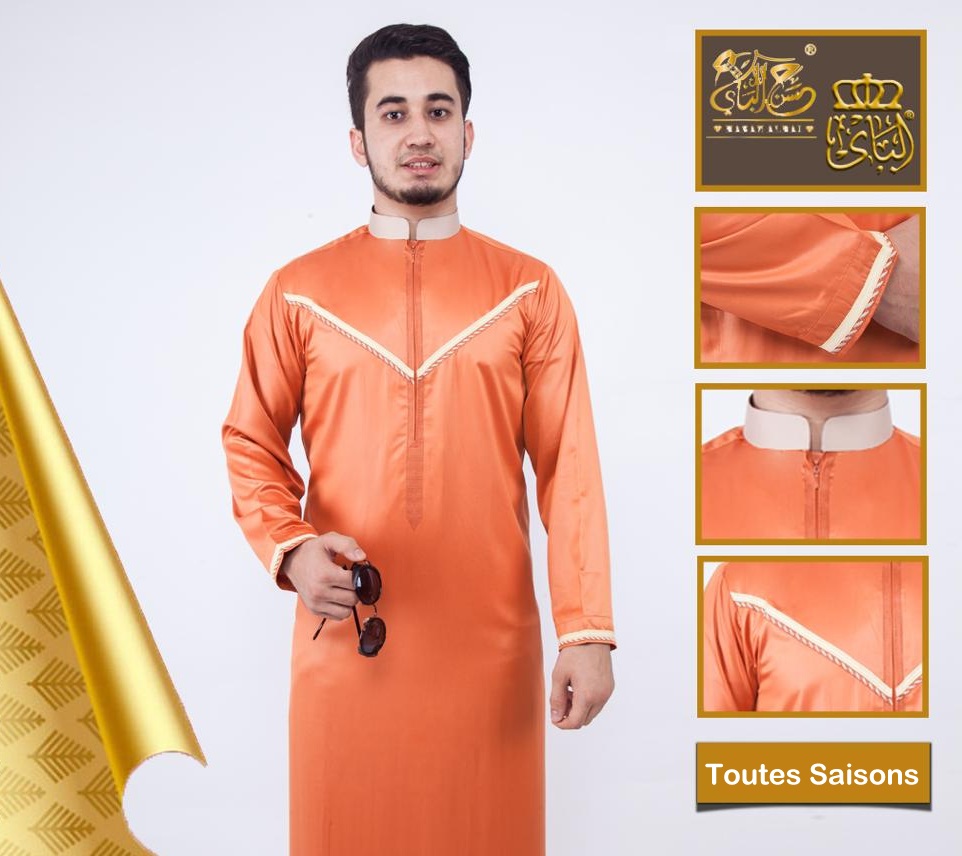 Qamis traditionnel élégant de qualité supérieure tissu satiné pour homme - Couleur orange Vetement & Accessoire