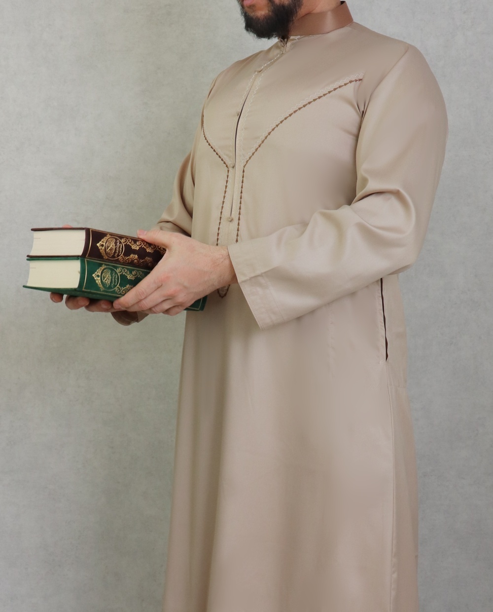 Qamis traditionnel élégant pour homme de qualité supérieure avec broderies - Couleur beige foncé Vetement & Accessoire