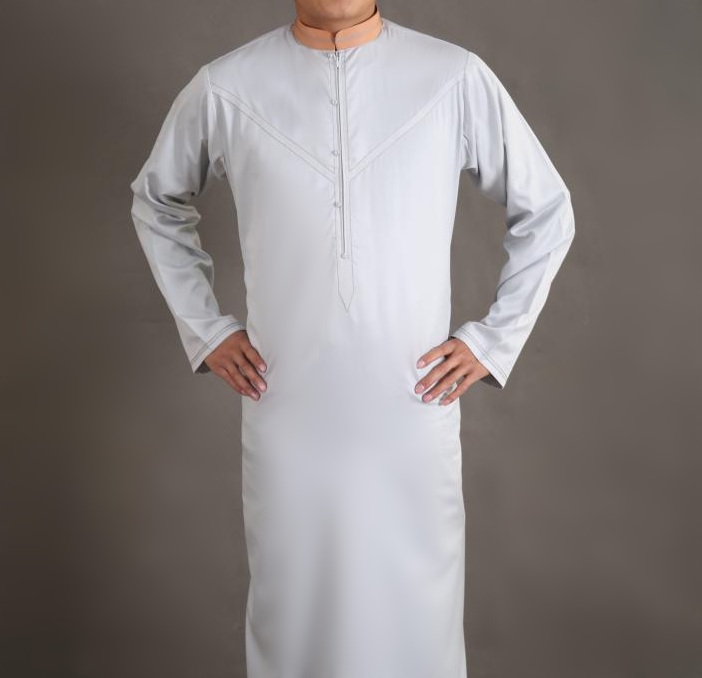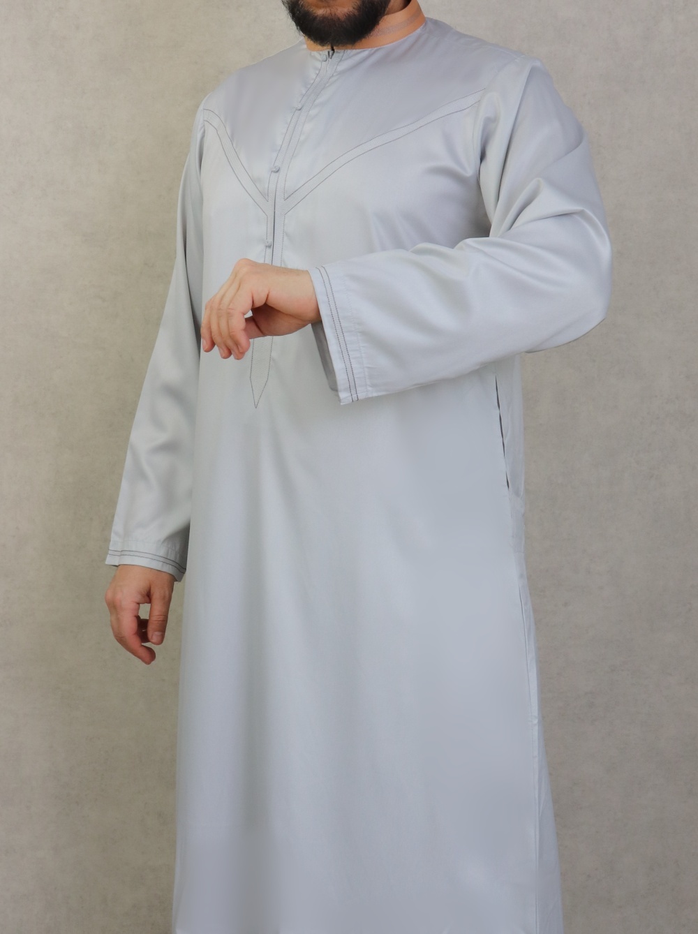 Qamis traditionnel elegant pour homme de qualite superieure avec broderies - Couleur gris clair