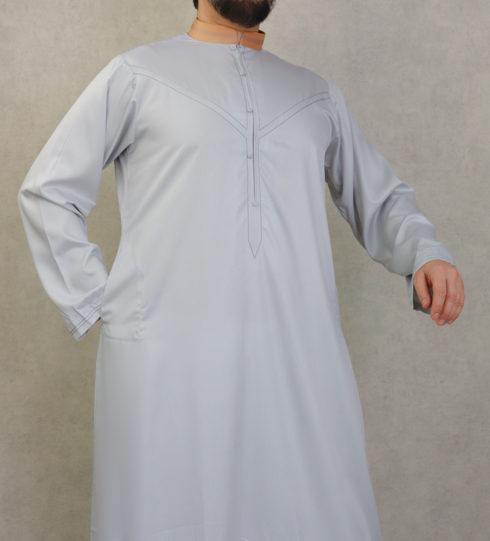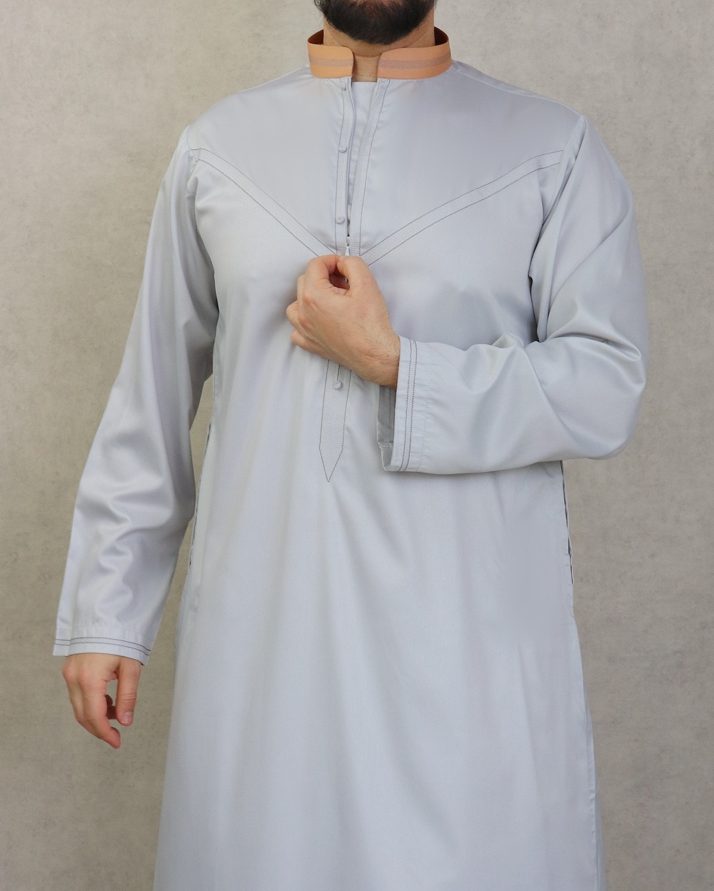 Qamis traditionnel élégant pour homme de qualité supérieure avec broderies - Couleur gris clair Vetement & Accessoire