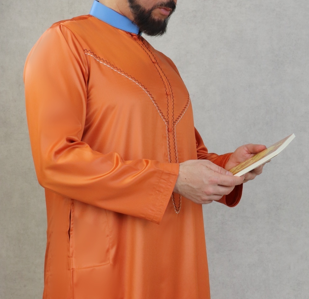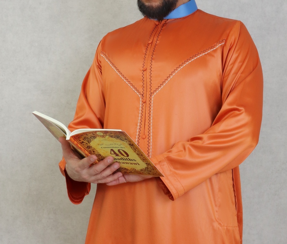 Qamis traditionnel élégant de qualité supérieure tissu satiné pour homme - Couleur orange - REF. 34127 (49.00 €)