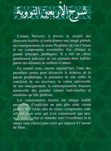 Les commentaires fournis sur chaque hadith permettent d’expliciter un peu plus cette vision globale de l’Islam afin de mieux comprendre cette religion pour ceux qui n’en connaissent que peu, mais aussi inciter et stimuler vers l’excellence et le mieux faire (ihsân) pour ceux qui aspirent à l’amour de Dieu.