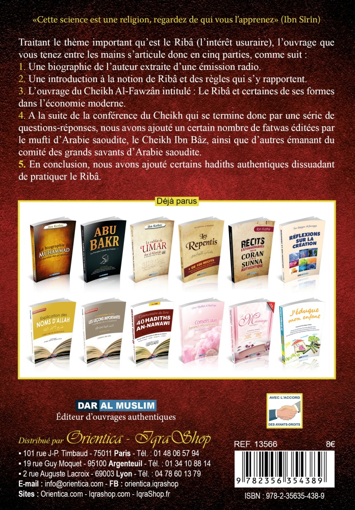 Traitant le thème important qu’est le Ribâ (l’intérêt usuraire), l’ouvrage que vous tenez entre les mains s’articule donc en cinq parties, comme suit :