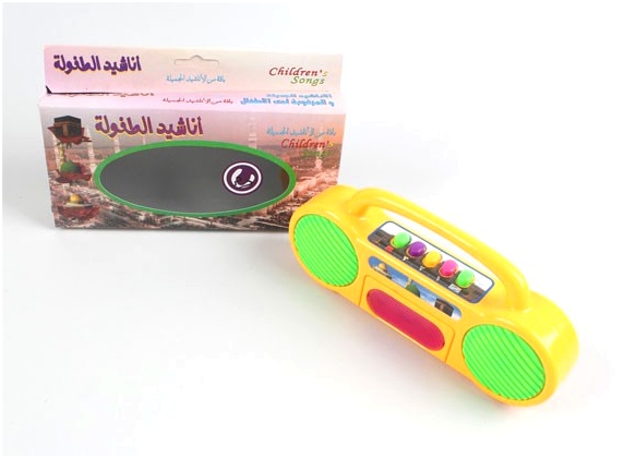 Jouet sous forme de radio avec chants pour enfants, les boutons du haut permettent de changer de chant et d'arrêter / reprendre.