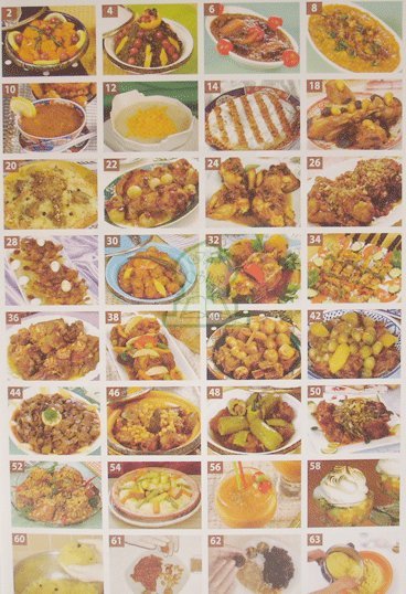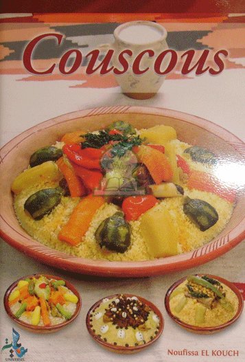 Recettes:- Ingrédients utilisés pour la préparation des plats de couscousPlats de couscous au poulet et au lapin- Couscous à la tafaya et aux cailles- Couscous baddaz au poulet et aux légumes- Couscous à la viande de lapinPlats de couscous au poisson- Couscous au congre- Couscous à l'espadon- Couscous à la lotte et aux crevettesPlats de couscous à la viande- Couscous à la tafaya et à la viande séchée- Couscous baddaz à la viande de mouton avec légumes en dés- Couscous belboula à la viande de mouton- Couscous à la viande de mouton- Couscous de viande de veau et aux choux de Bruxelles- Couscous à la queue de veau- Couscous belboula à la tête d'agneau- Couscous de tripes à la tafaya- Couscous Soussi à la viande de chevreau- Couscous belboula à la viande séchée- Couscous aux navets jaunes- Couscous de collier d'agneau aux légumesPlats de couscous au riz et saffa- Couscous de riz au poulet- Couscous de semoule de blé (saffa)- Saffa de rizPréparation des couscous- Couscous fin- Couscous de blé dur (Smid)- Couscous blé moulu au son (rouge)- Couscous semoule d'orge (Belboula)- Couscous baddaz- Saffa de riz