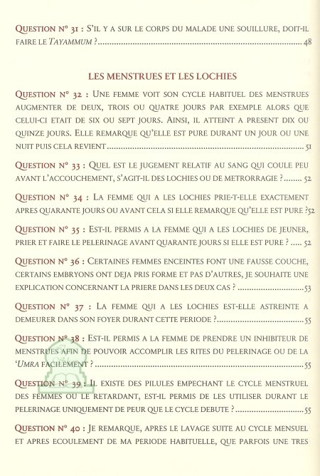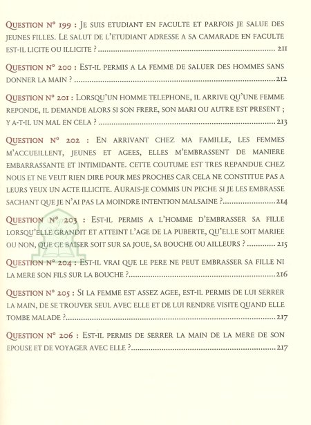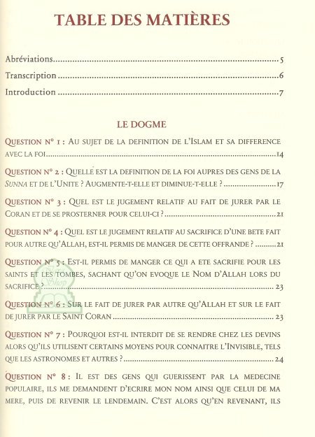 Ce livre est une compilation de (256) fatwas (avis juridiques) émises par les plus grands savants de notre époque et portant sur des sujets aussi importants que variés : le dogme, la prière, la purification légale, le jeûne, les relations conjugales, le mariage, le divorce et de nombreux autres.