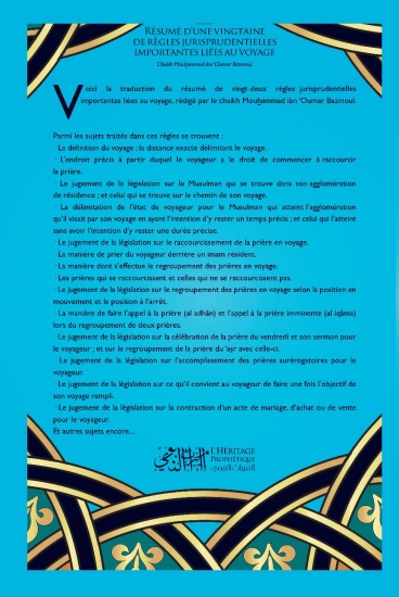 Excellent ouvrage pour un premier apprentissage de ce domaine, même si les francophones intermédiaires y trouveront eux aussi des fawâ-id (enseignements bénéfiques) d’ordre jurisprudentiel qui les réjouiront…
