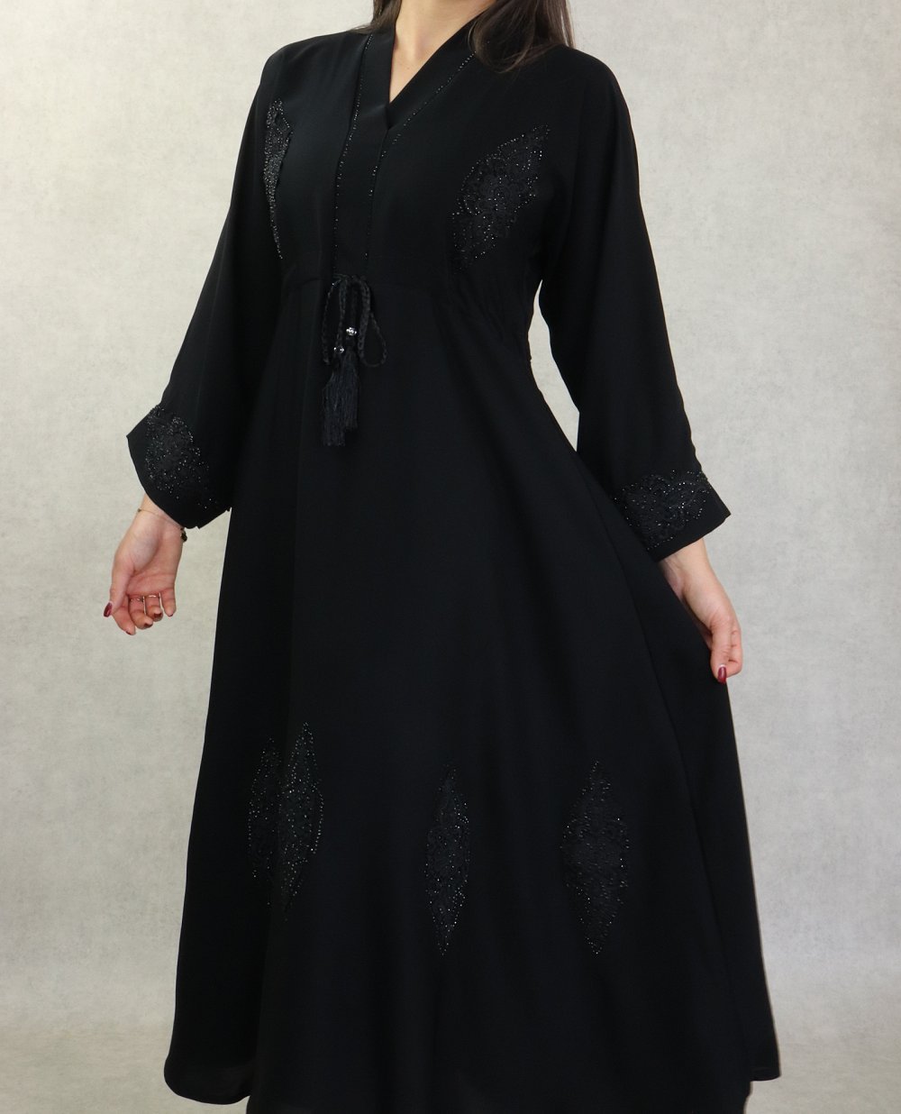 Robe Abaya Dubaï noire de qualité avec strass et décorations incrustées - REF. 38199 (45.00 €)