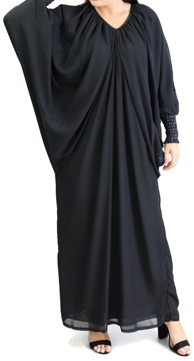 Robe Abaya modele papillon pour femme - Taille standard - Couleur Noir