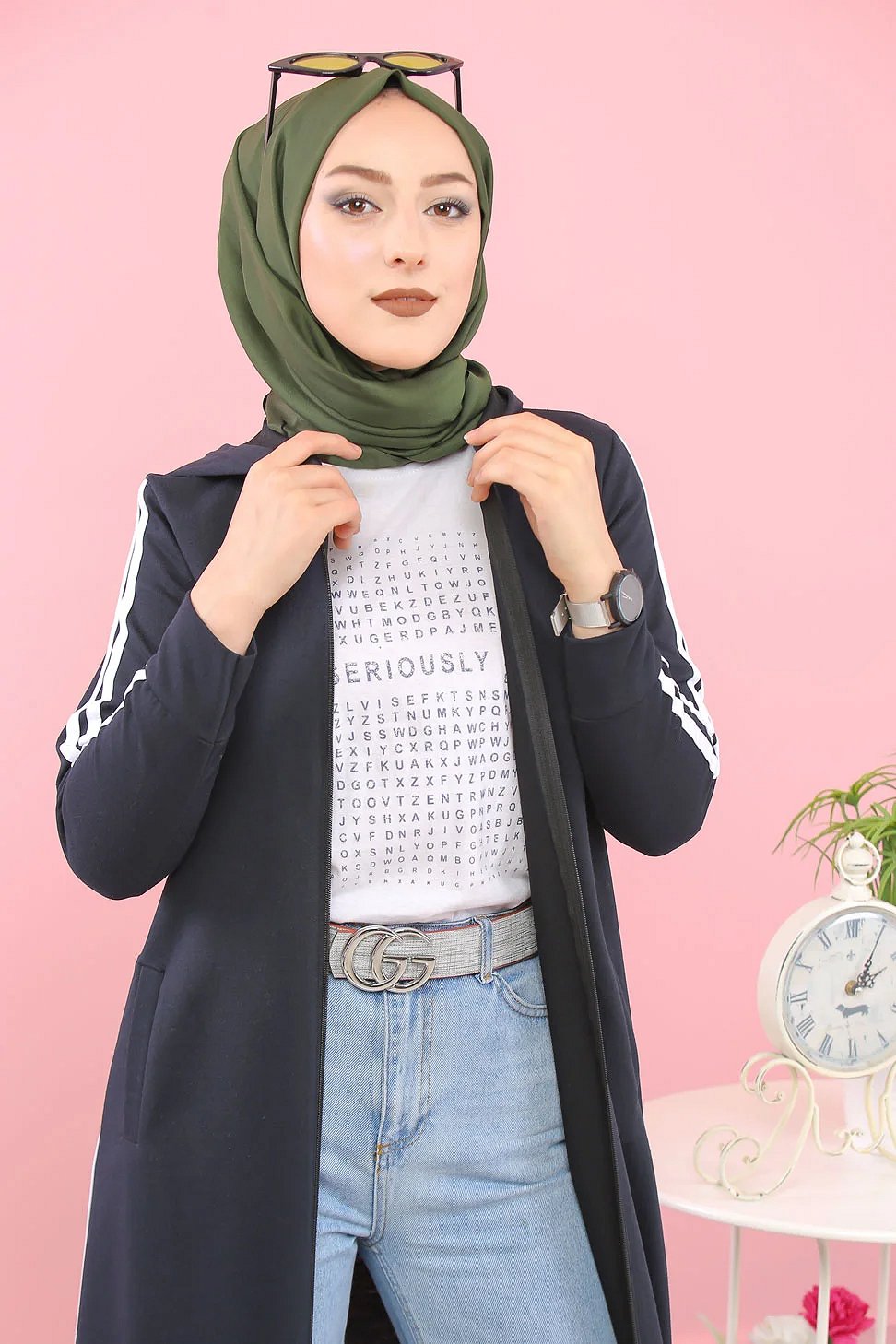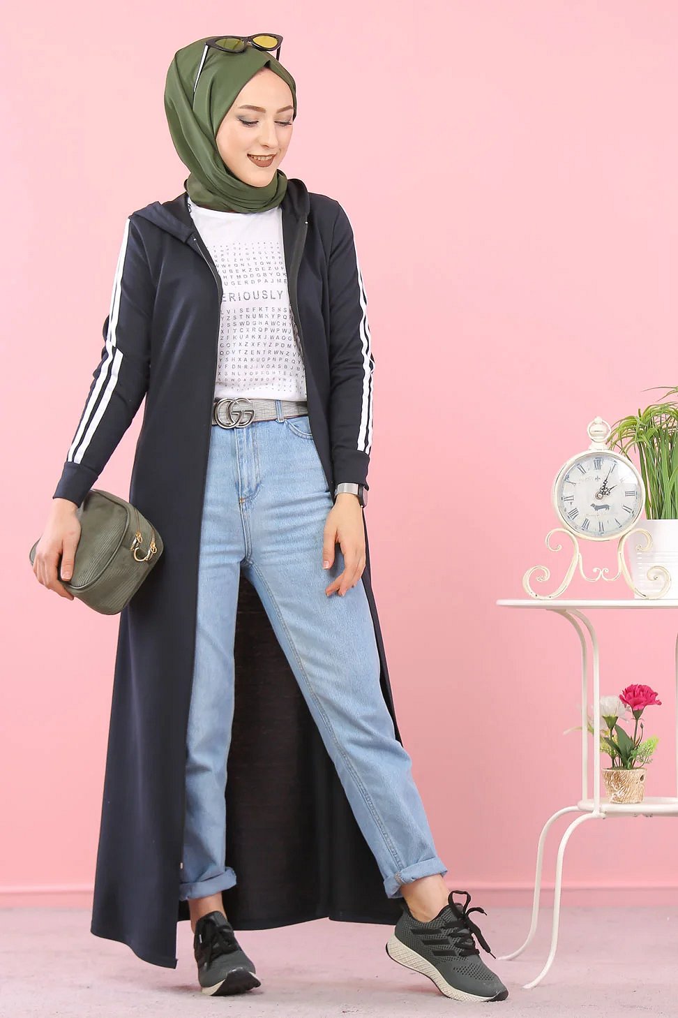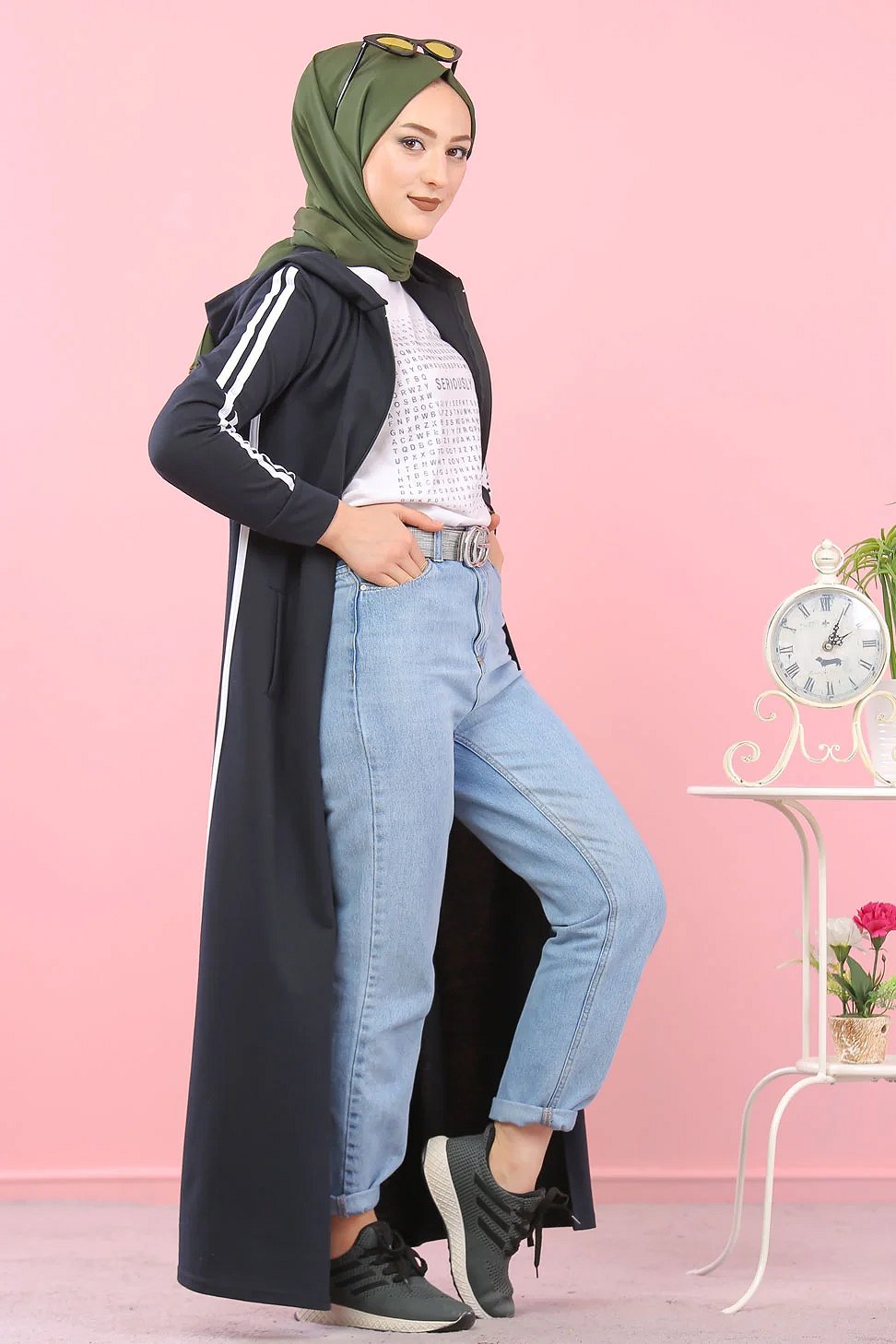Gilet long avec capuche pour femme musulmane - Couleur bleu marine - REF. 37545 (29.90 €)