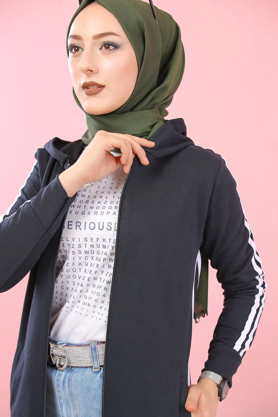 Gilet long - Veste longue sportswear (Tenue sport pour femme musulmane) - Couleur bleu marine - REF. 35784 (28.00 €)