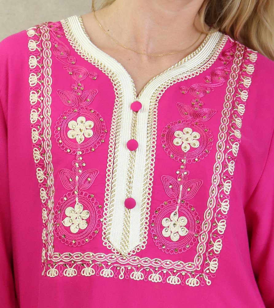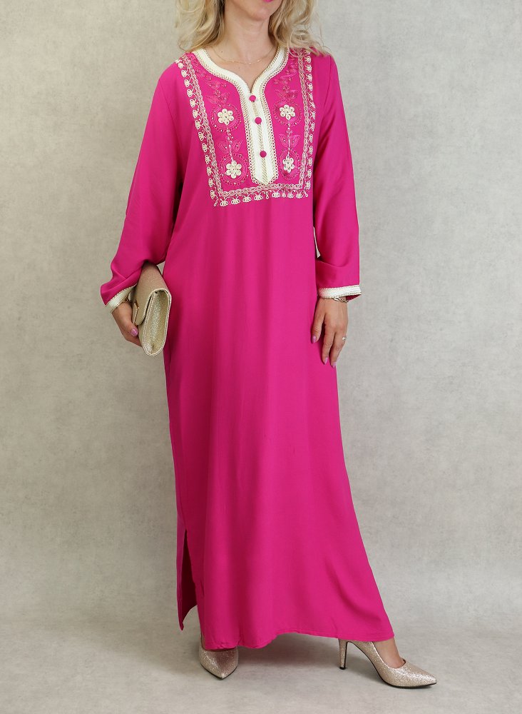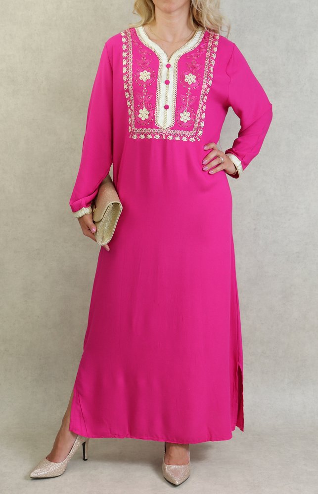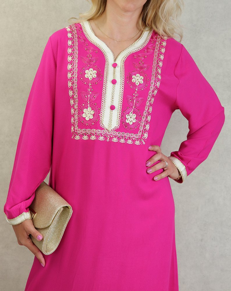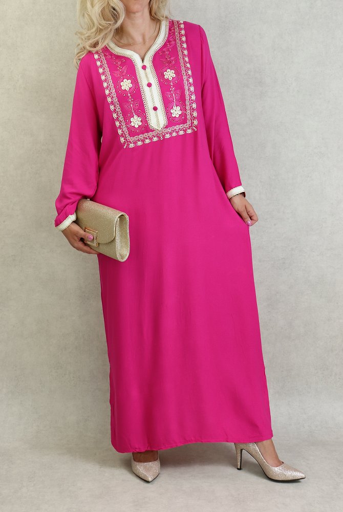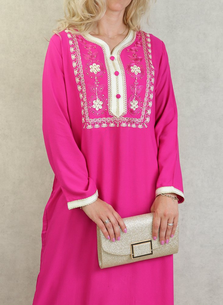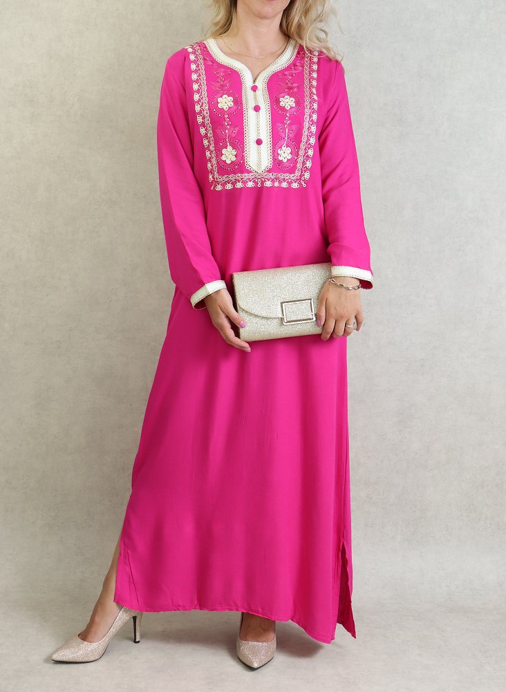 Robe Algerienne avec broderies et strass - Couleur Rose fuchsia