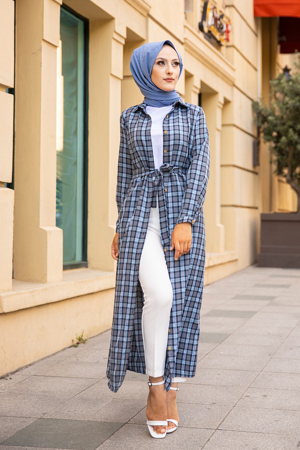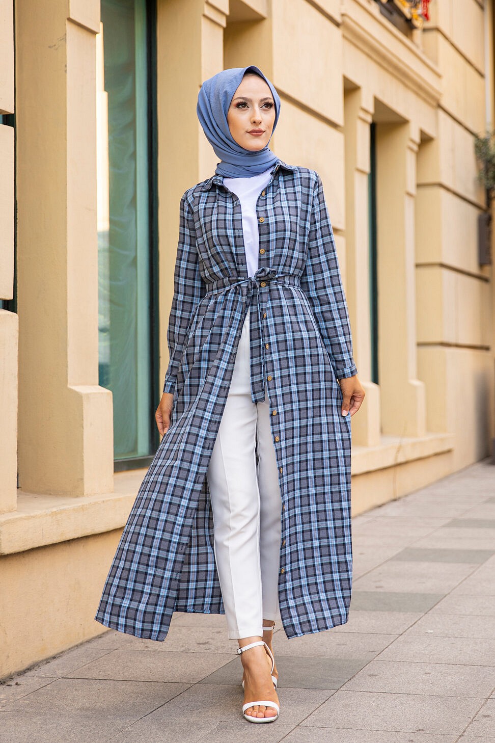 Chemisier à carreaux (Tenue Hijab Chic) - Couleur noir blanc et kaki - REF. 35654 (19.90 €)