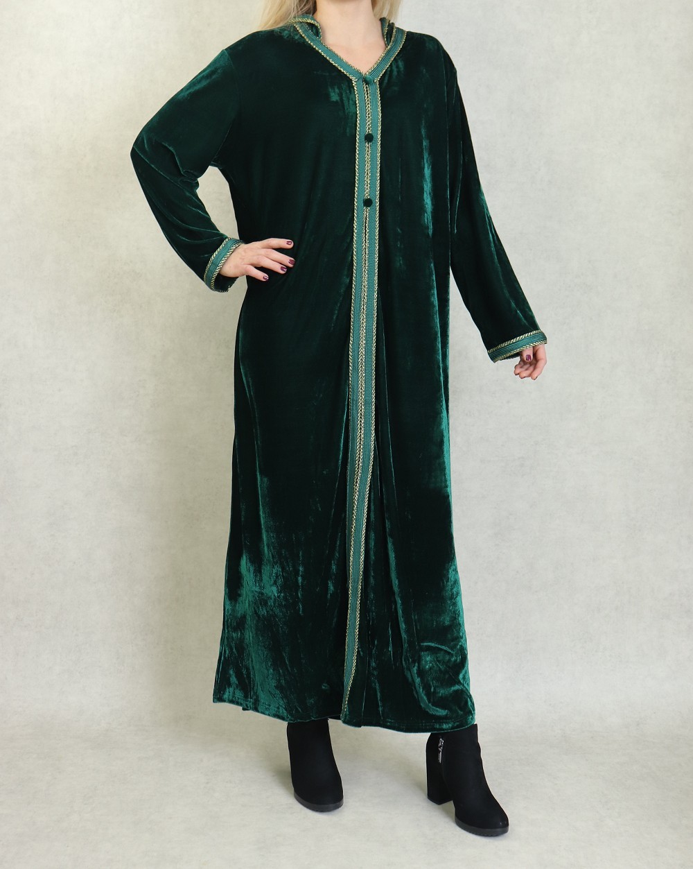 Robe longue orientale algérienne en velours brodée et perlée pour femme - Couleur Vert foncé - REF. 29689 (29.90 €)