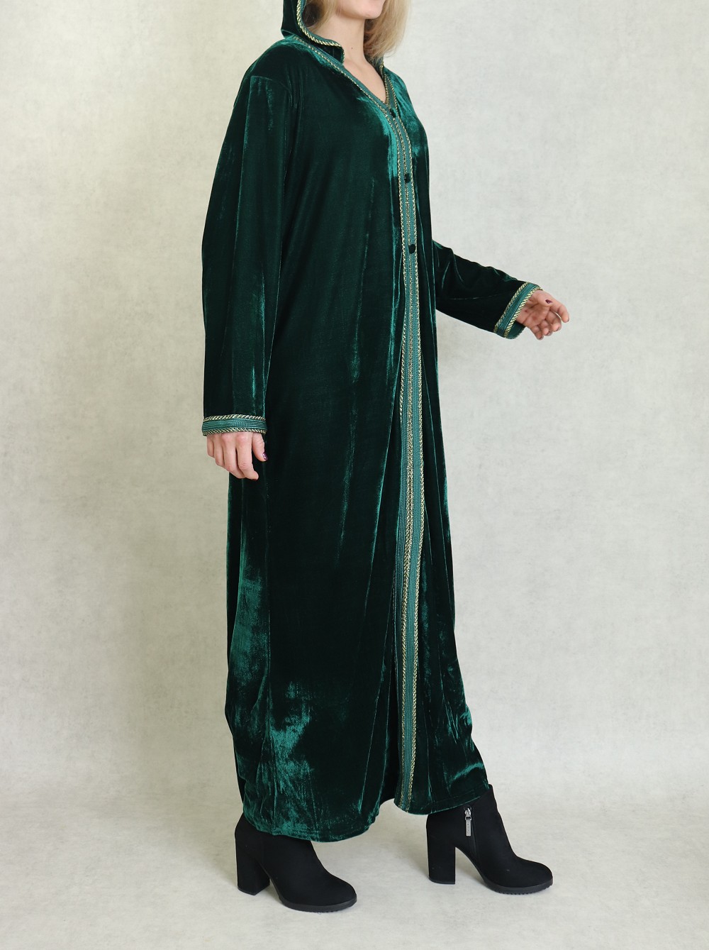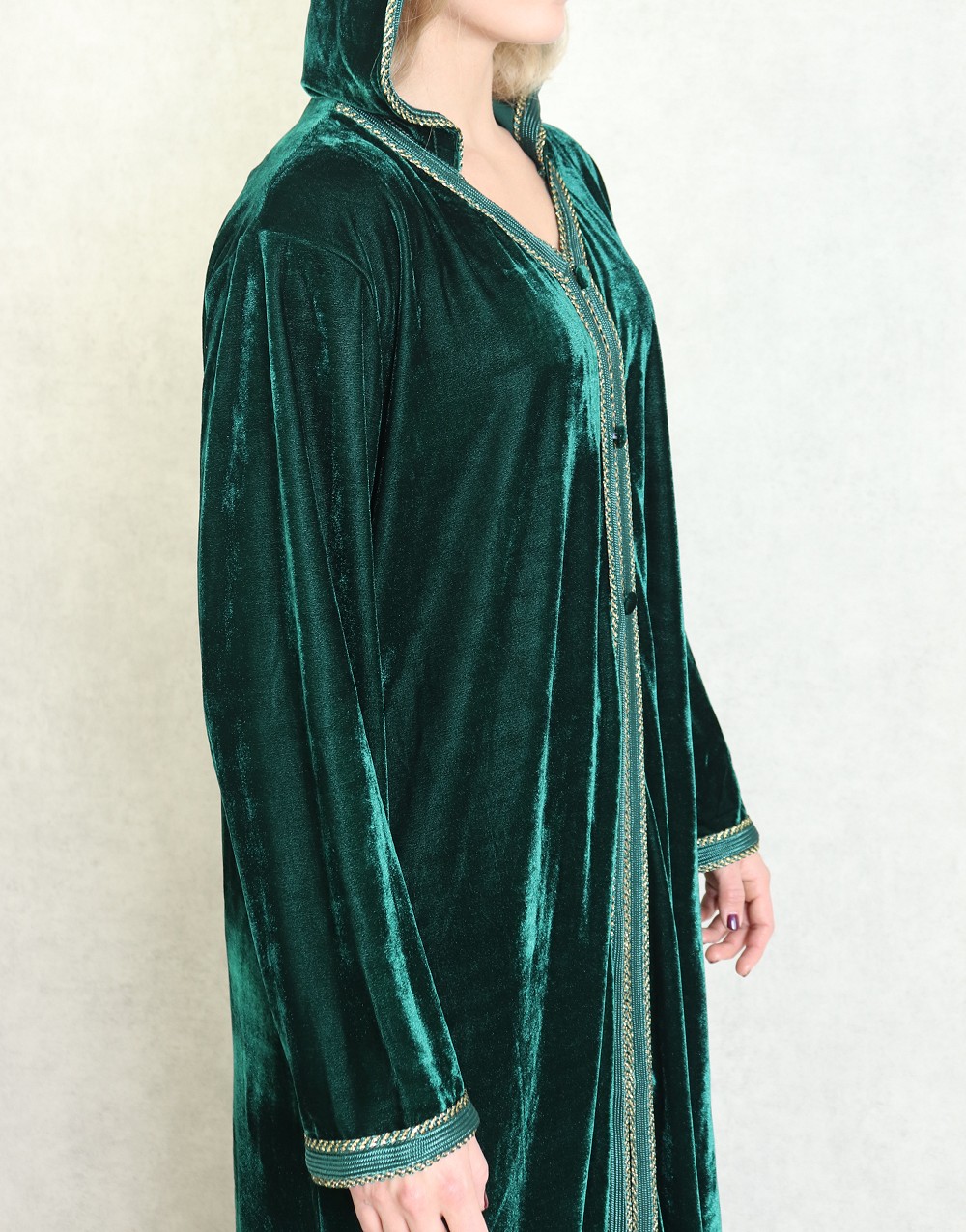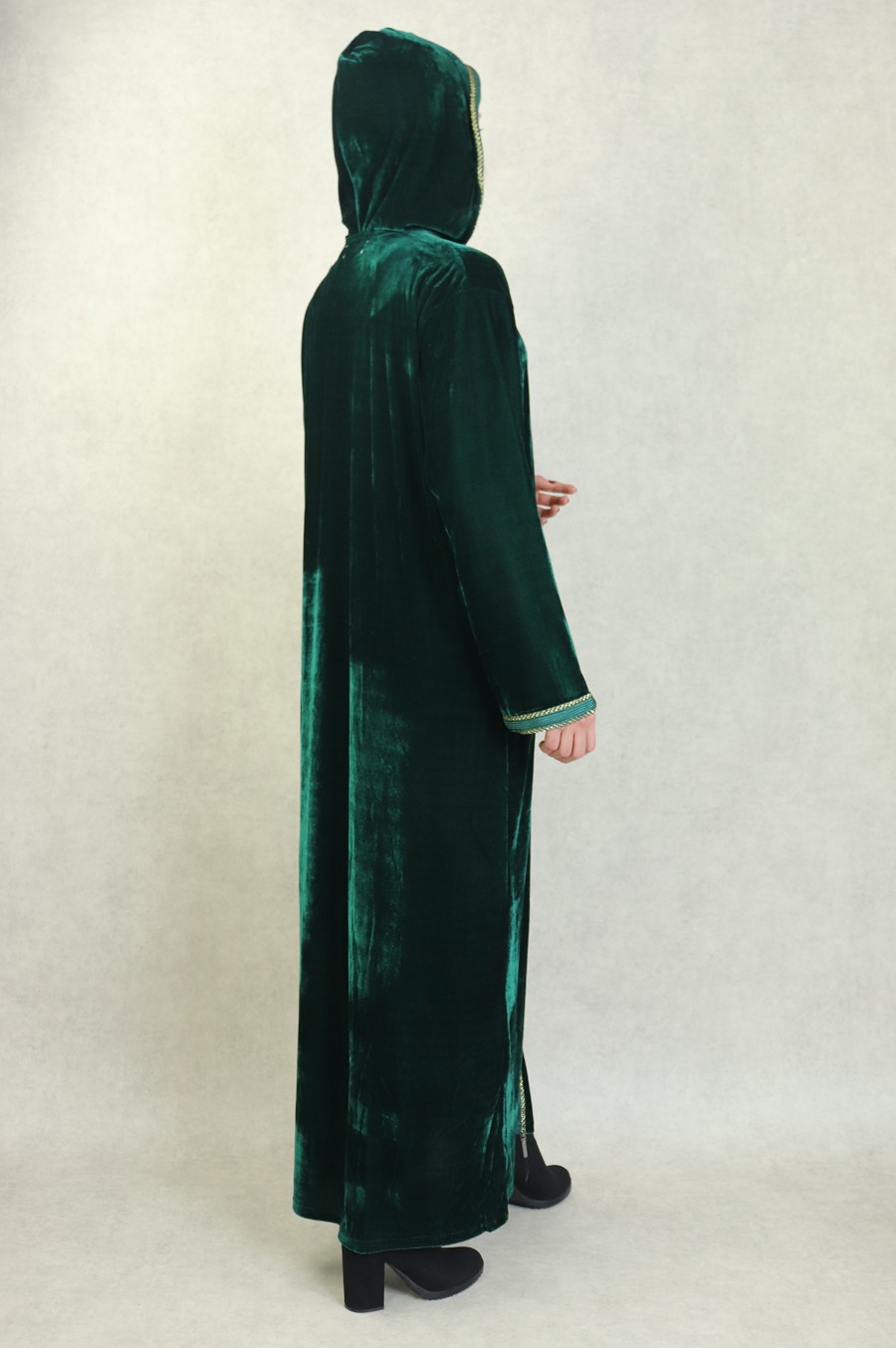 Robe Djellaba longue avec capuche pour femme (Automne Hiver) - Couleur Vert fonce