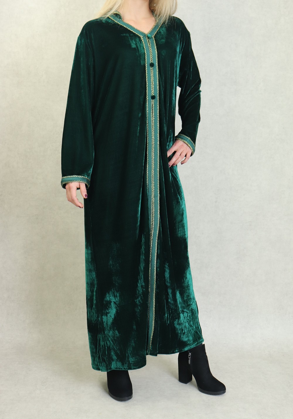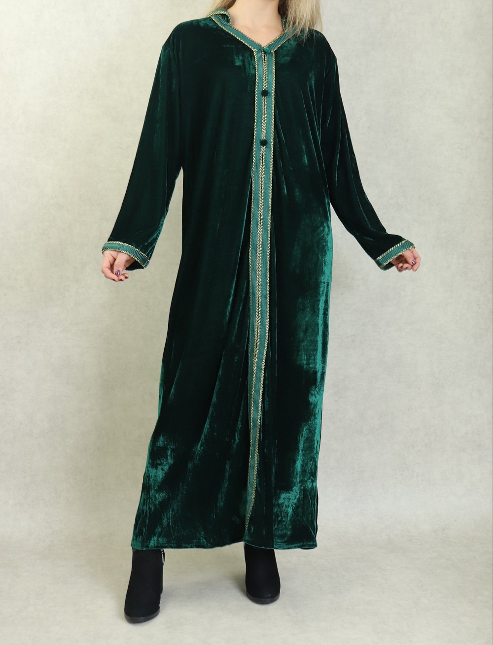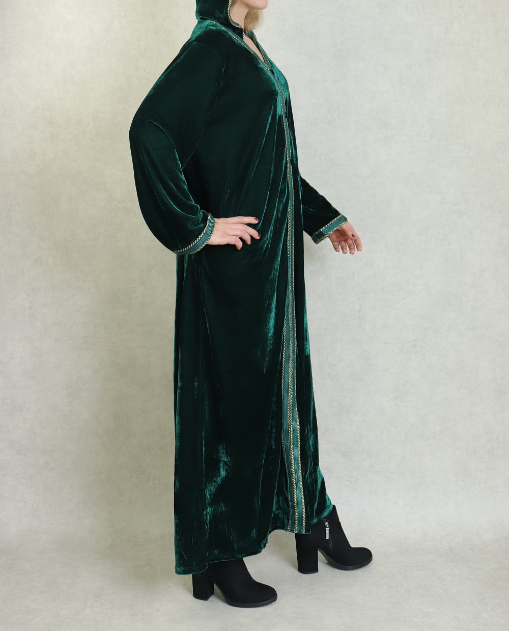 Robe Djellaba longue avec capuche pour femme (Automne Hiver) - Couleur Vert fonce