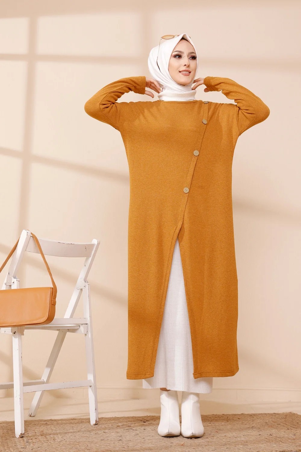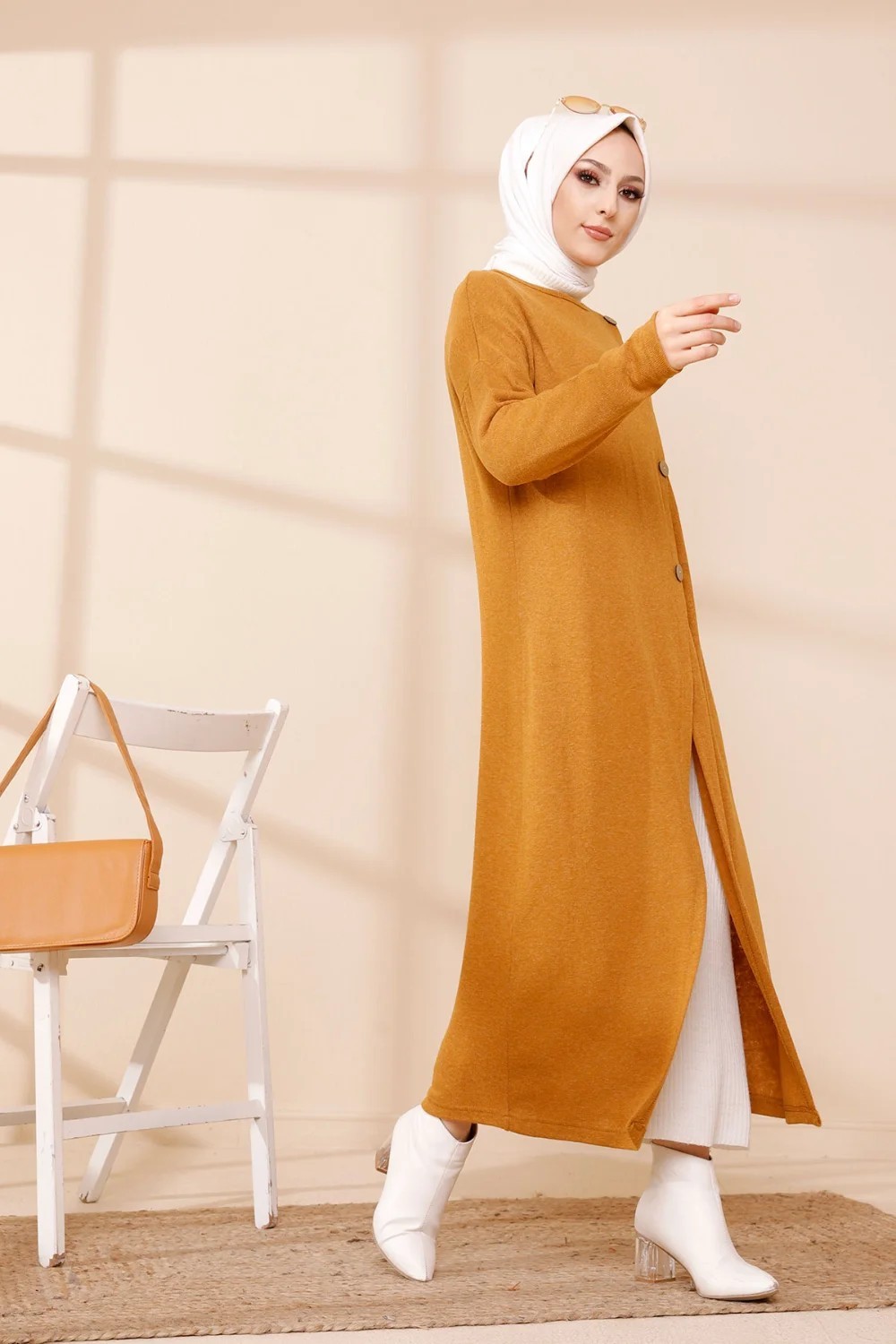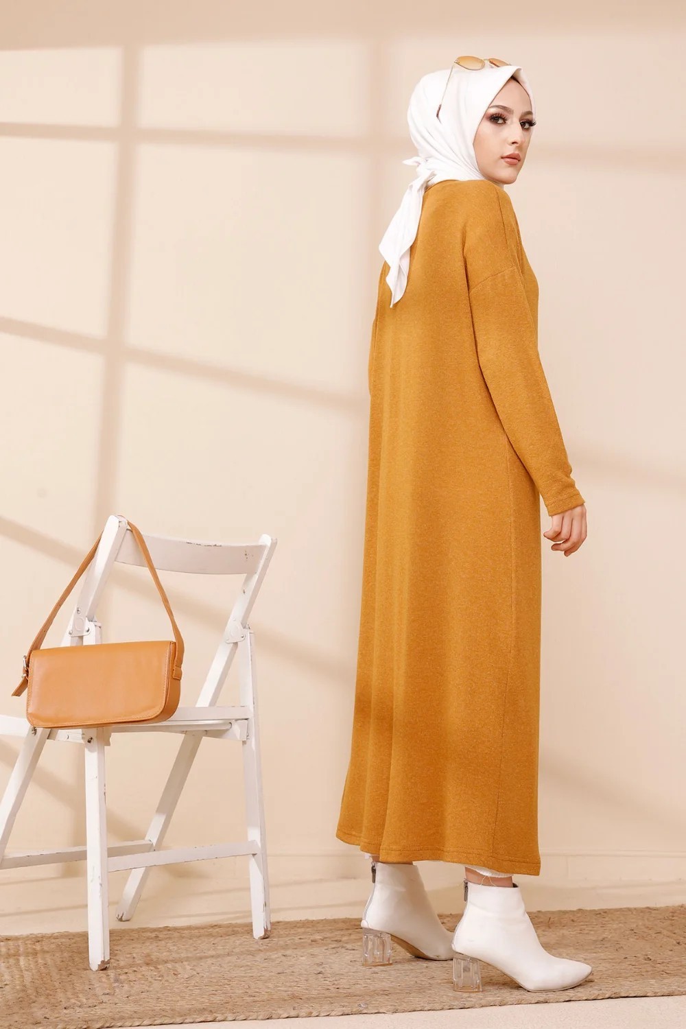 Robe Gilet pour femme (Tenue Hijab Chic Saison Automne-Hiver) - Couleur moutarde Vetement & Accessoire