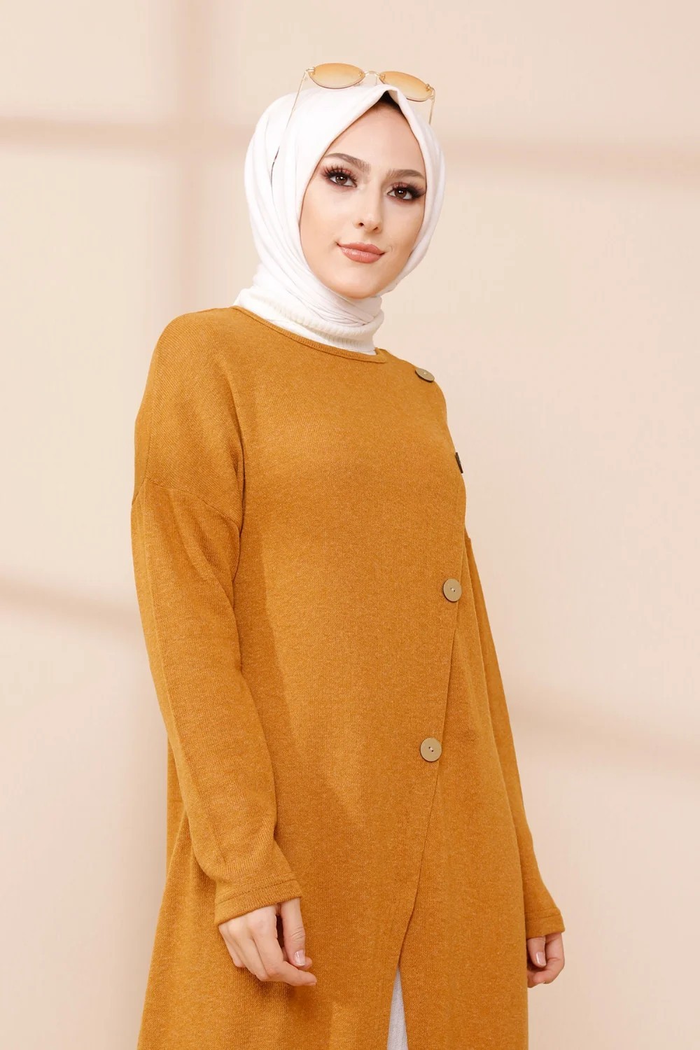 Robe Gilet pour femme (Tenue Hijab Chic Saison Automne-Hiver) - Couleur moutarde
