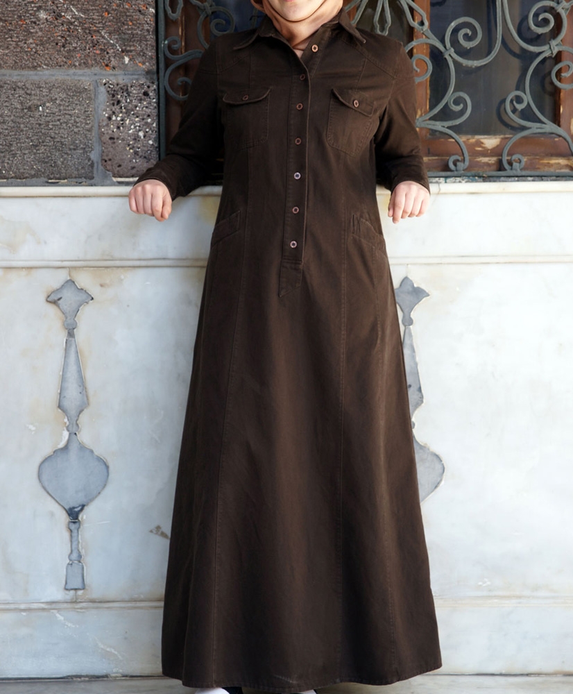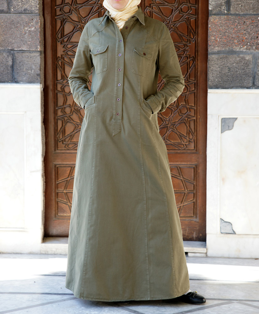 Robe tissu polaire avec ceinture (Vêtement Hijab Saison Automne-Hiver) - Couleur kaki - REF. 35699 (26.90 €)