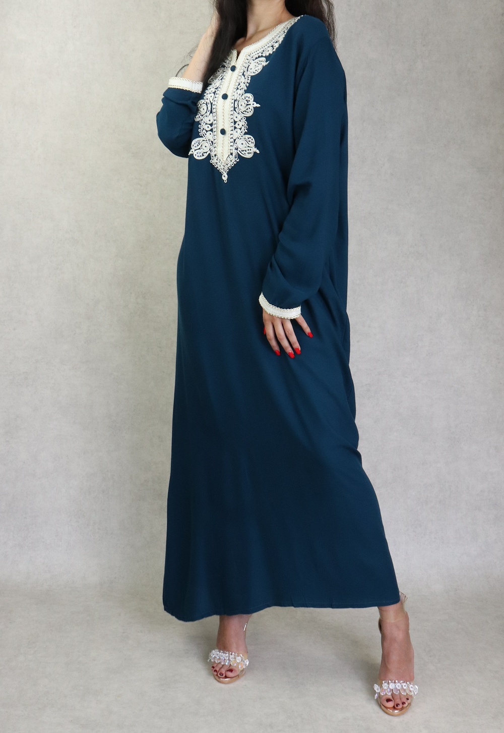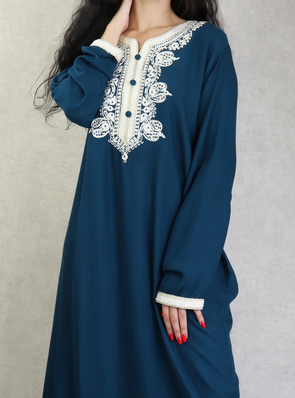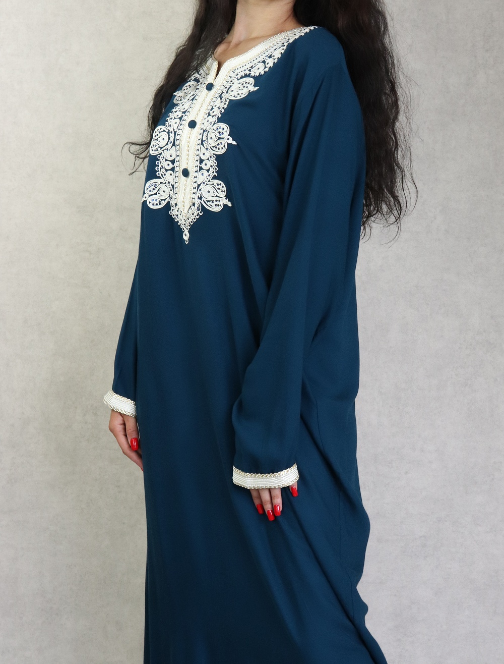 Robe Orientale pour femme avec broderies et strass - Couleur bleu petrole