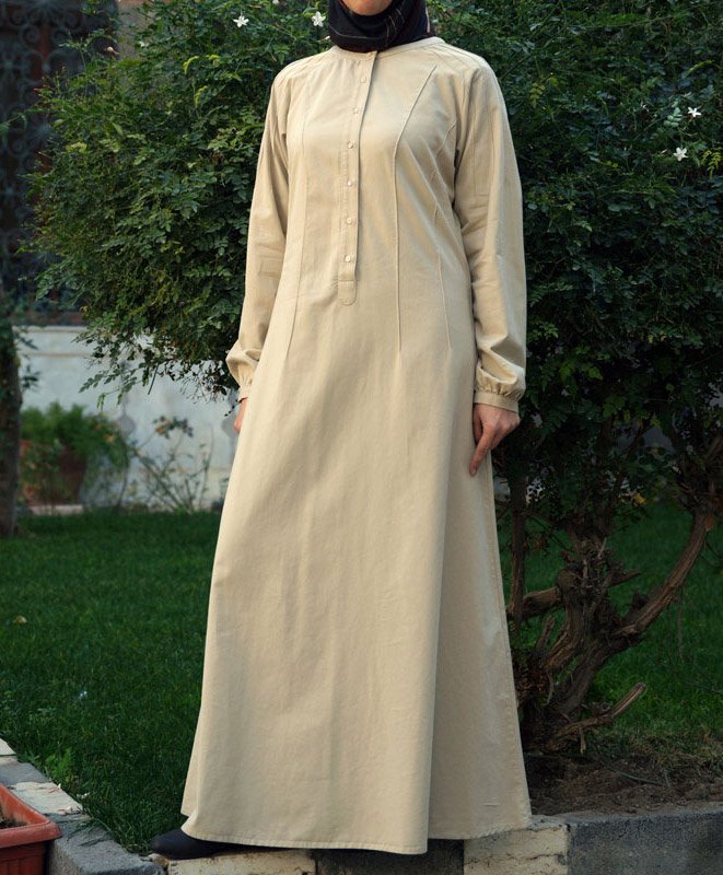 Robe chemise longue avec ceinture et grandes poches (Tenue ample pour femme voilée) - Couleur beige - REF. 33280 (28.00 €)