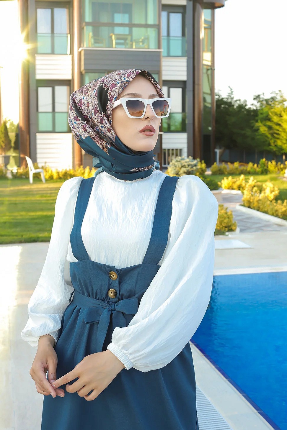 Ensemble habillé deux pièces : tunique évasée et pantalon (Tenue femme pour hijab) - Couleur bleu pétrole - REF. 36203 (38.00 €)