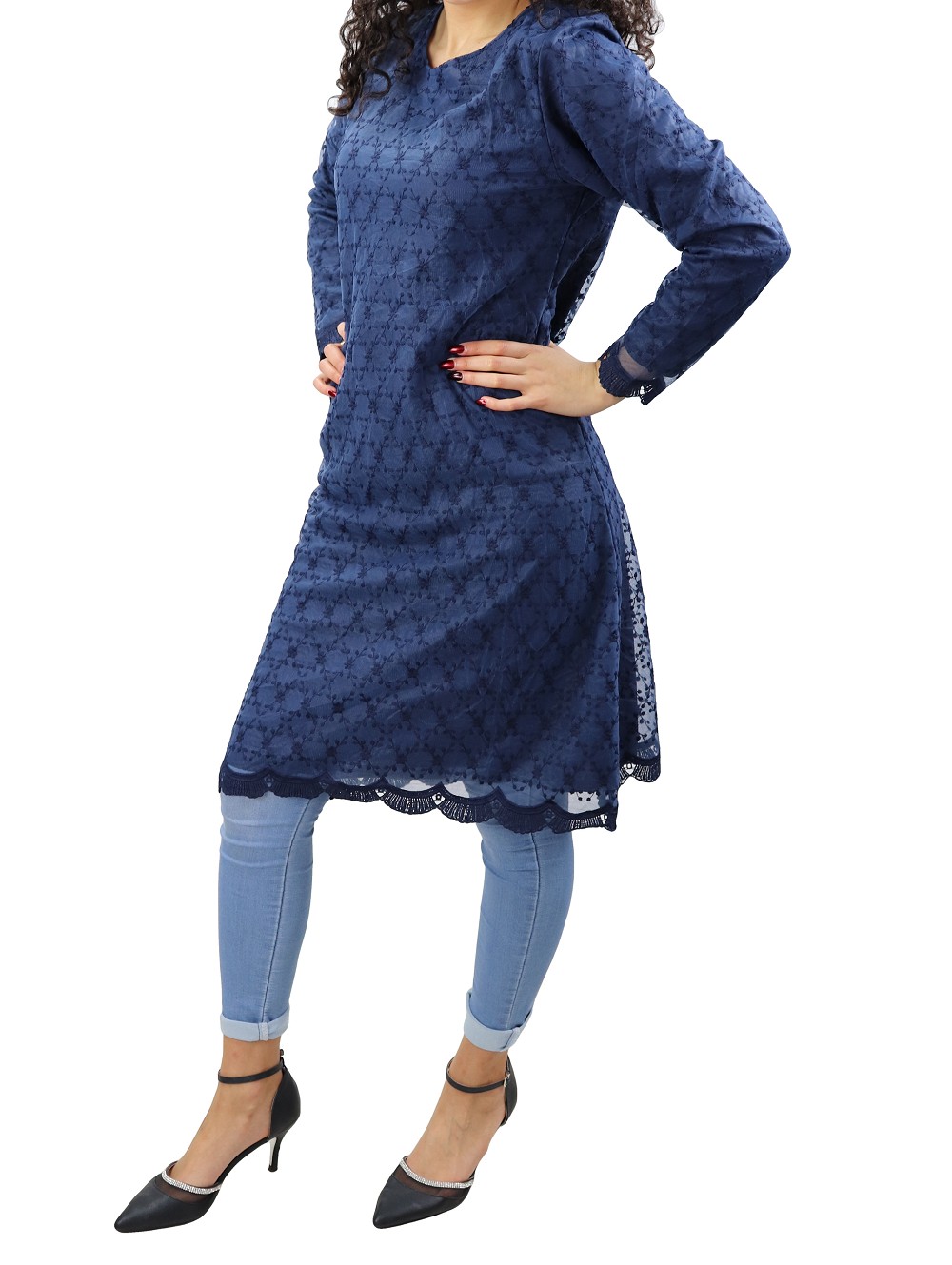 Robe-Tunique a dentelles doublee pour femme - Couleur Bleu marine