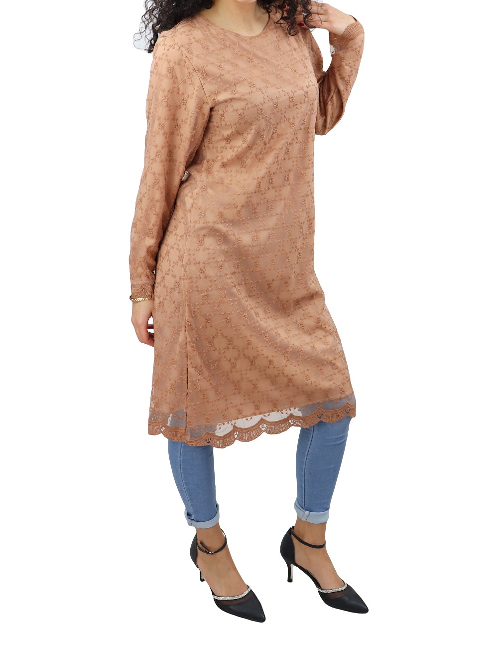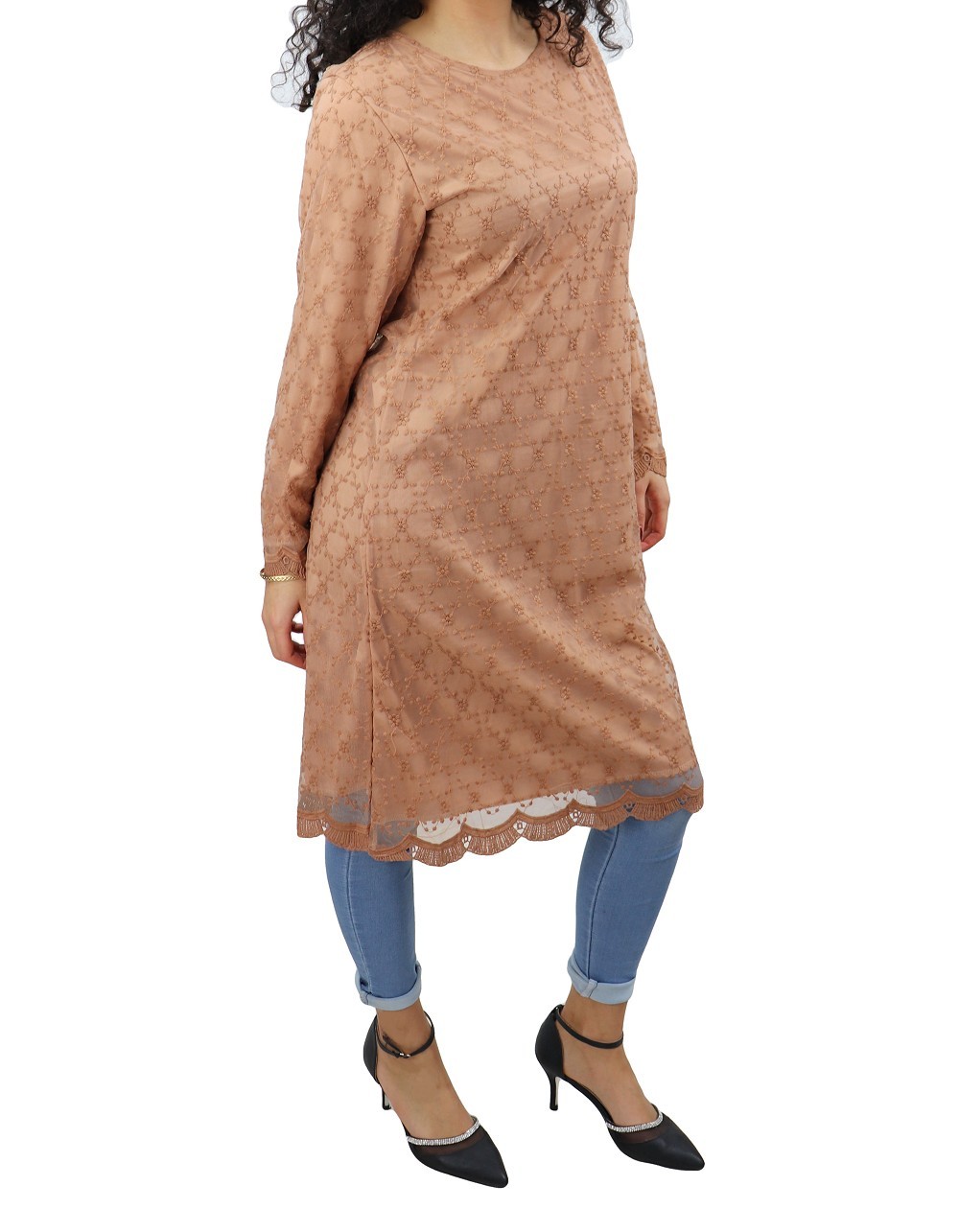 Robe-Tunique à dentelles doublée pour femme - Couleur Camel Vetement & Accessoire