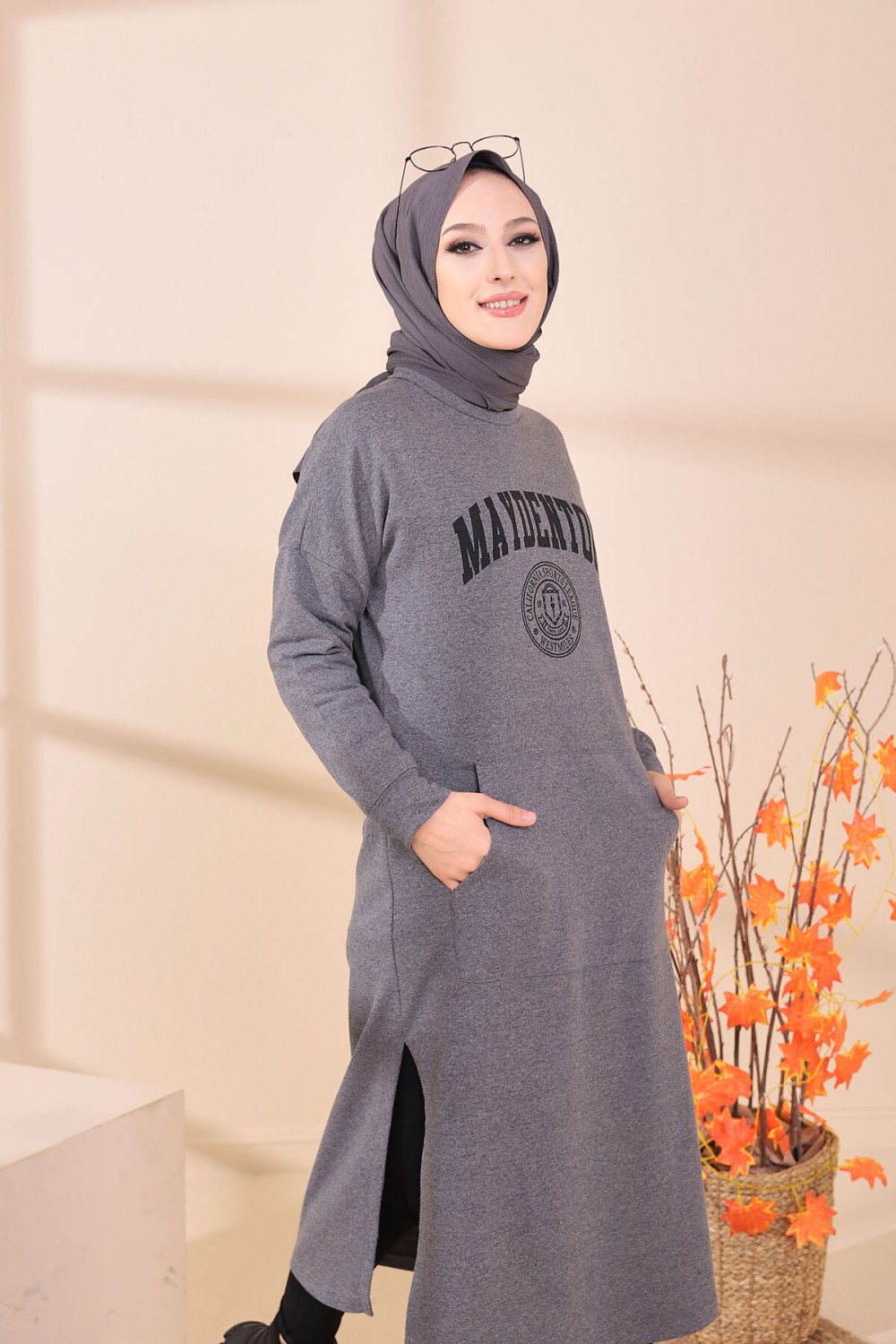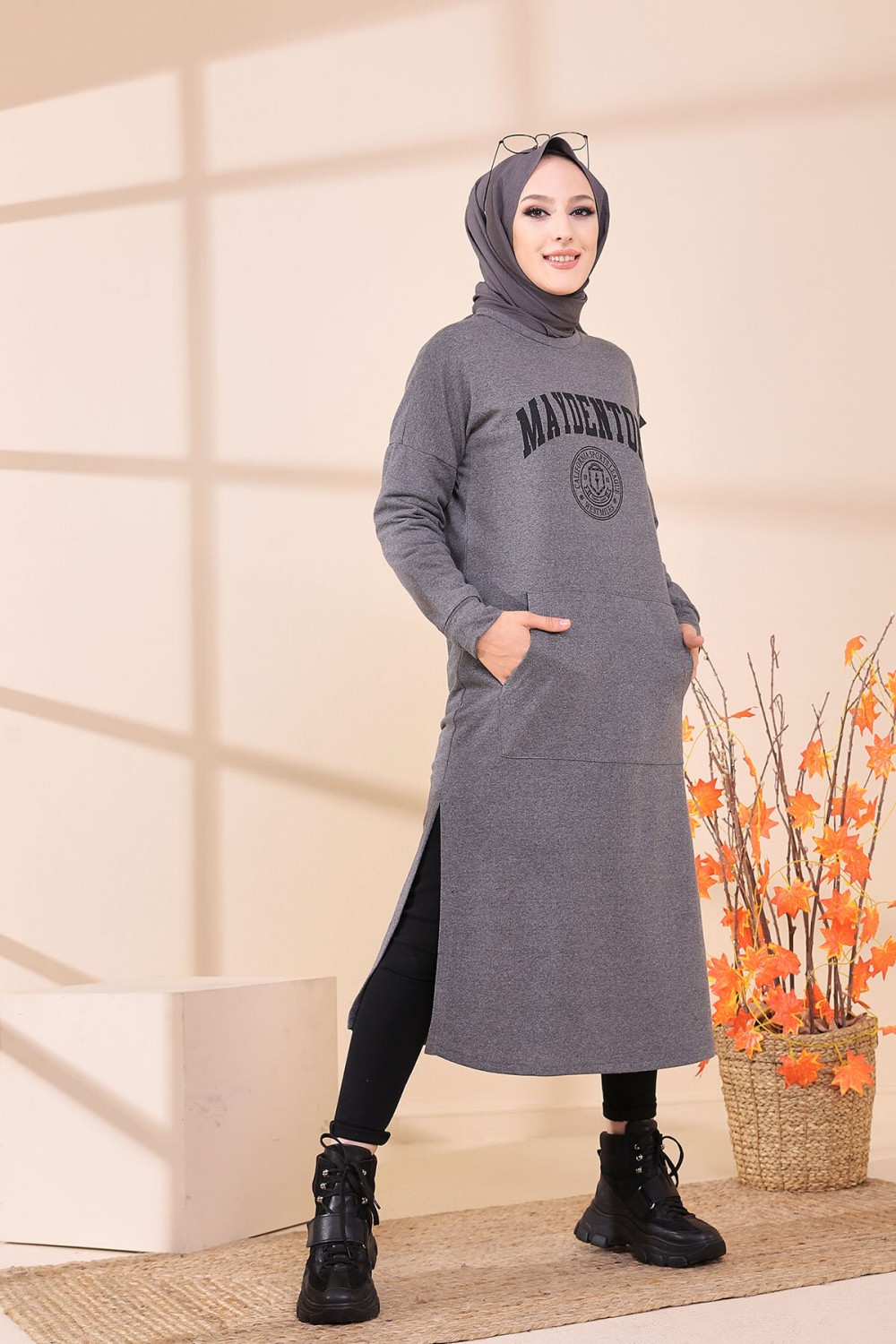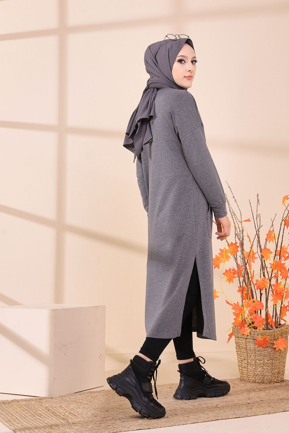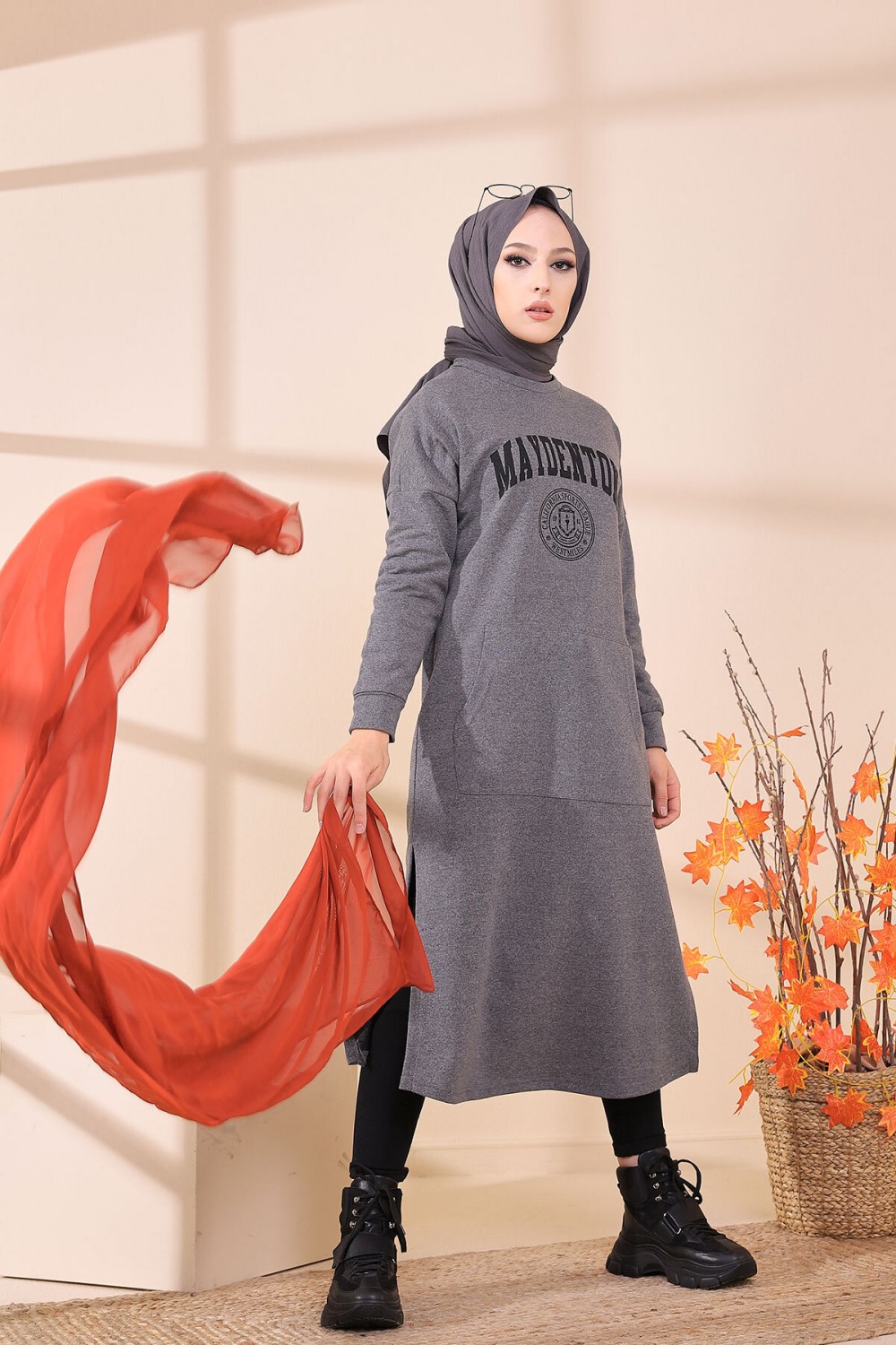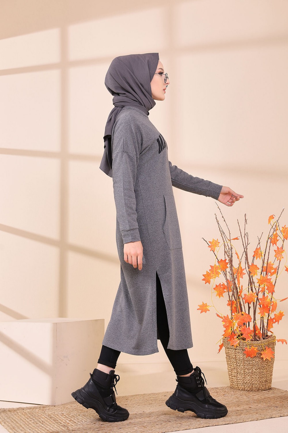 Tunique décontractée avec grande poche (Sweat femme Hijab) - Couleur anthracite - REF. 35271 (22.00 €) - En Promotion à 17.50 €