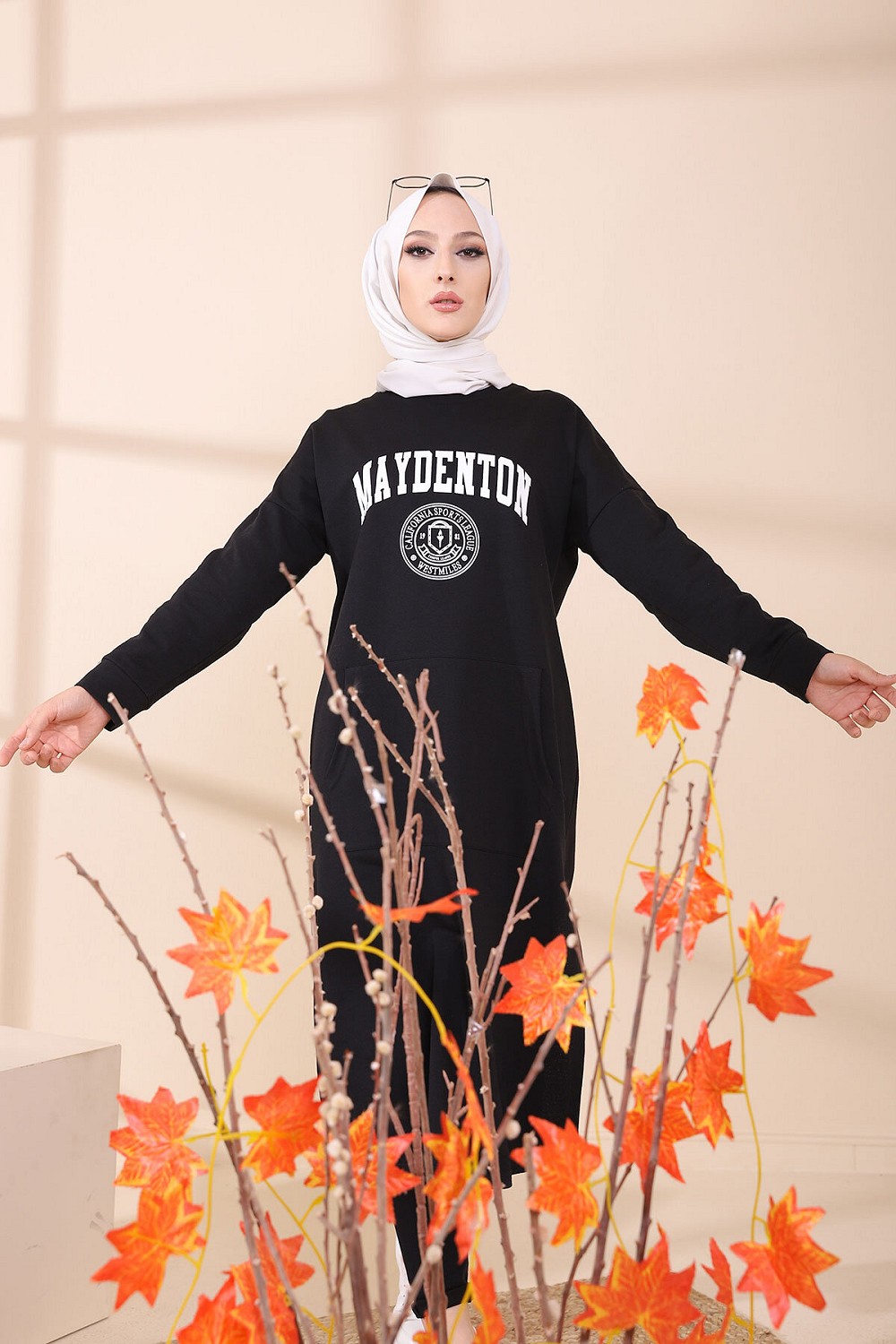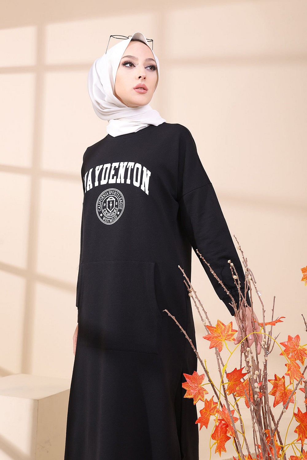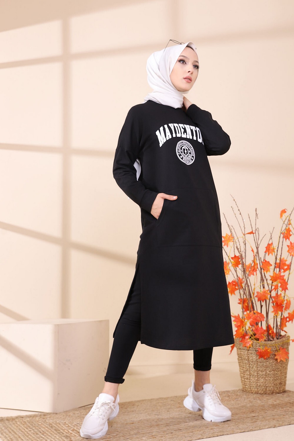 Tunique imprimée avec grandes poches style sweat-shirt.