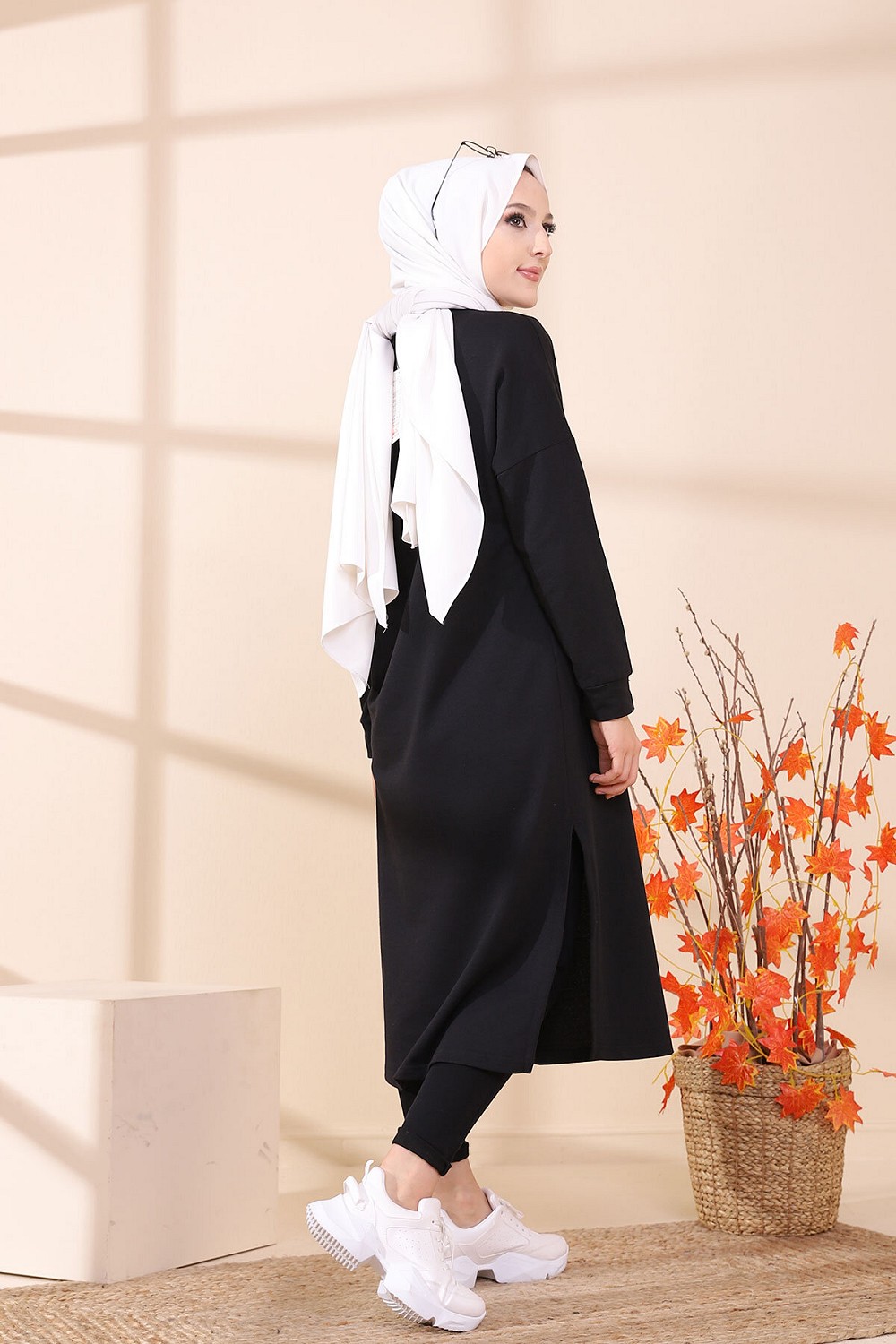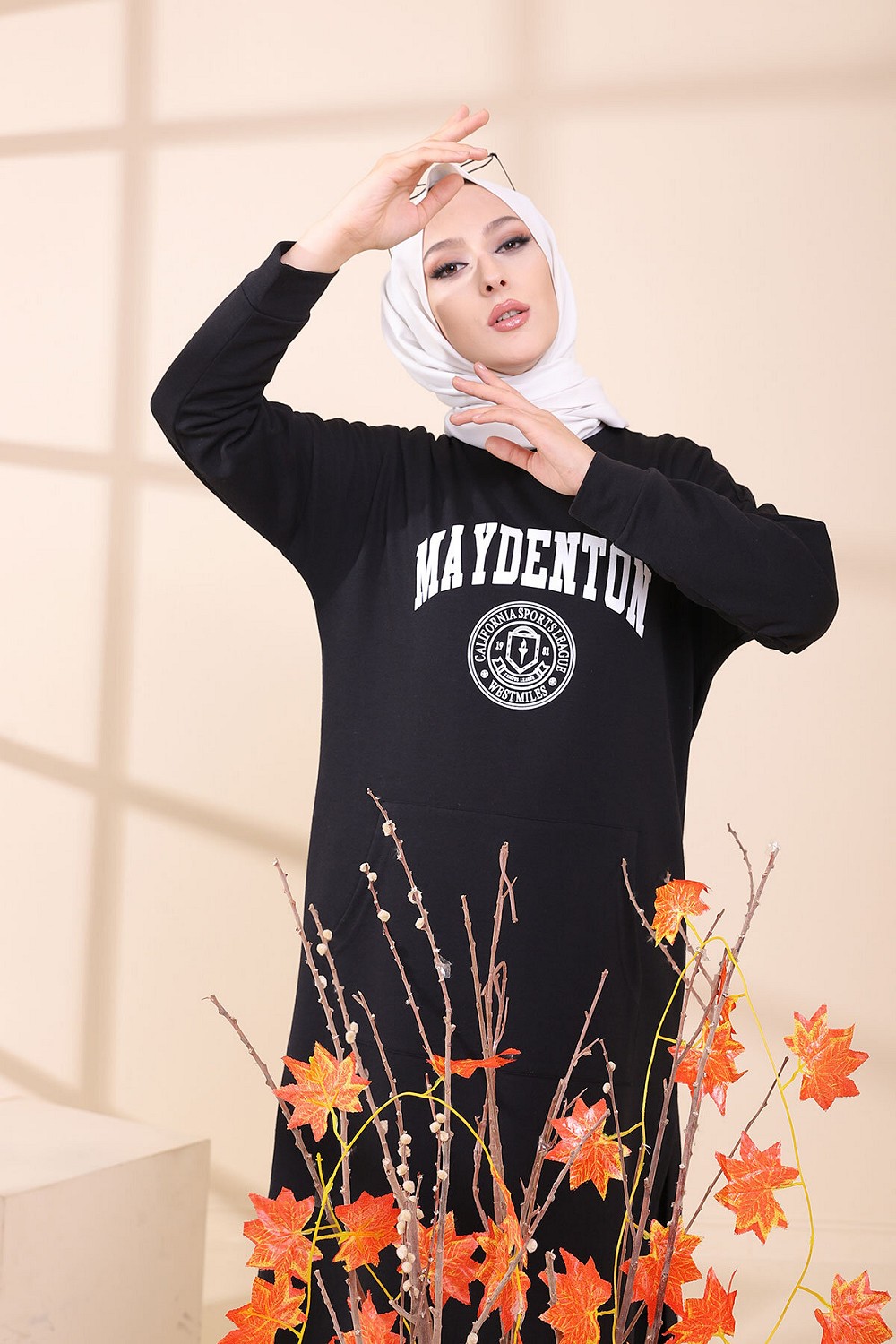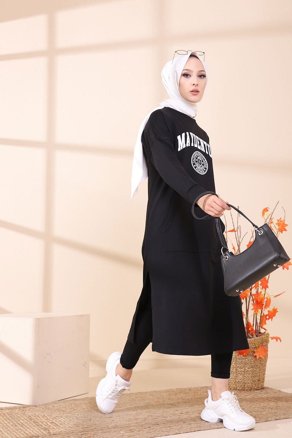 Tunique imprimée avec grandes poches style sweat-shirt.