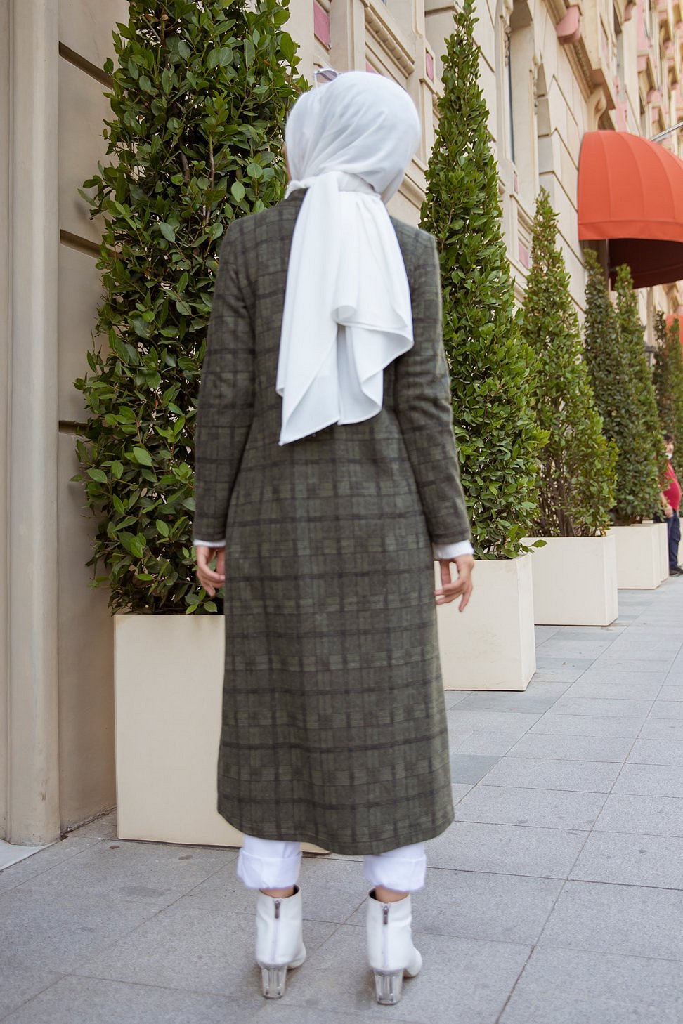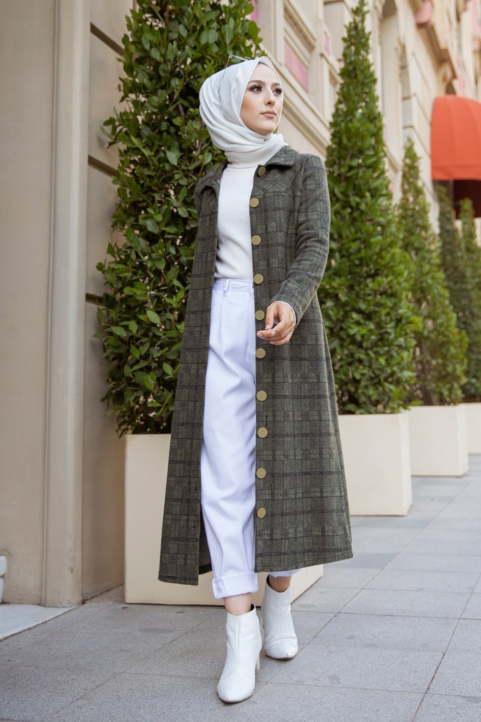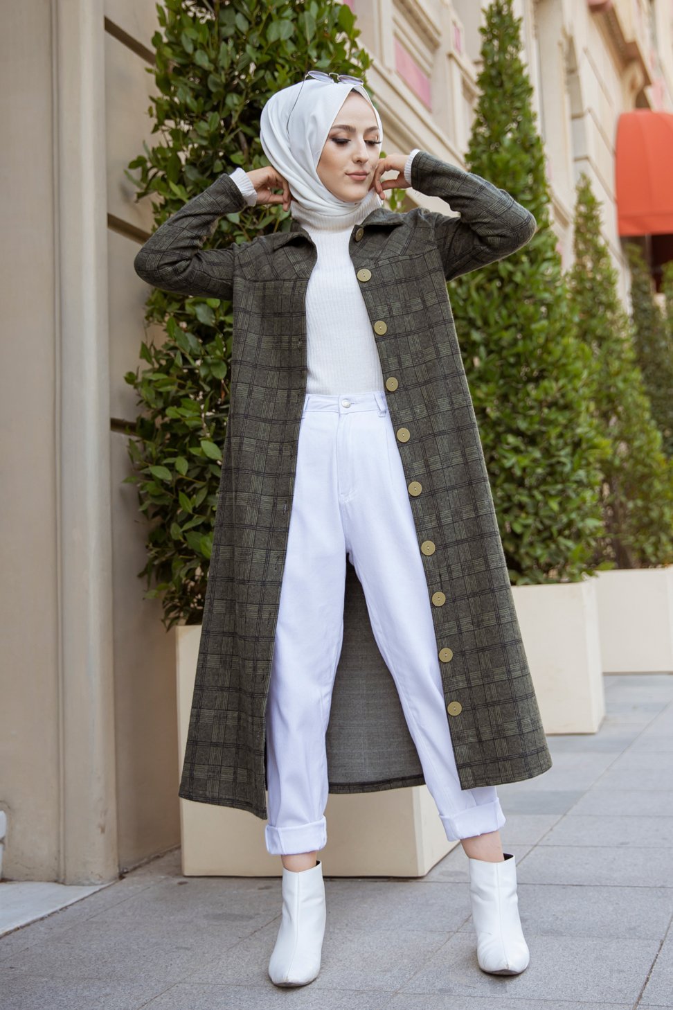Veste mi-longue de couleur kaki (Vêtement turque moderne et chic pour femme) - REF. 33361 (29.90 €) - En Promotion à 22.90 €